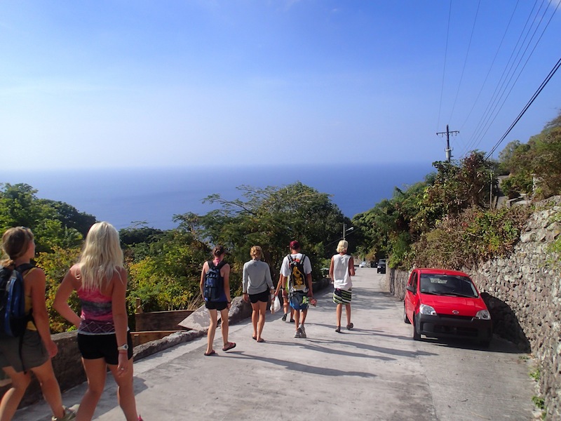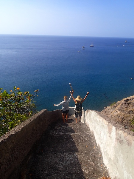 When I went down to wake everyone up this morning, I was shocked to find everyone up and on task for the assignments, breakfast, and organizing for the upcoming day. This allowed us for a quick breakfast, and we were in dinghies heading for the forbidden shores of Saba. Getting to shore can be quite the task as you must time your landing with the swell, but all the students have paid keen attention in OCE class and understand the theory and patterns associated with swells and waves. The hike up the steep cliffs, affectionately called the “Ladder,” proved quite taxing. Still, Jon and I ignored the pain in our quads by making up outlandish stories “that they read in the guidebook” about Saba and how the perfectly rounded rocks on the beach were sometimes used by pirates as cannonballs in battles to defeat their sovereigns. Soon enough, we had climbed our way up through, ironically named Bottom Town, and were on the trail towards Windward, our final destination. Three of our more intrepid hikers, Mollie, Ivy, and Brando, opted to make their way to the summit of Mt. Scenery and were rewarded with certificates upon completion that will no doubt be cherished and hopefully proudly displayed. We all met up at a favorite restaurant, ate fish sandwiches, and headed to learn how to blow glass beads and buy souvenirs with Joe Bean, the local glassblower extraordinaire. Afterward, we all made our way back to Bottom Town and rendezvoused at a coffee shop for a quick caffeine and internet fix. We then headed back towards O-Star and were greeted by our old friend Irv at the shore for a quick pickup. Everyone, including O-Star, is amped as we prepare for our FINAL PASSAGE. Students are eager to show the staff what they are capable of, and the staff is 100% confident in them. Winds are a bit lacking this evening, but spirits are not. It should be an absolute blast!