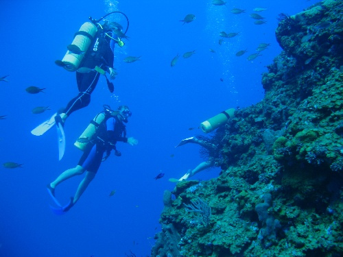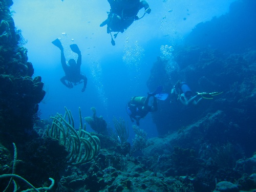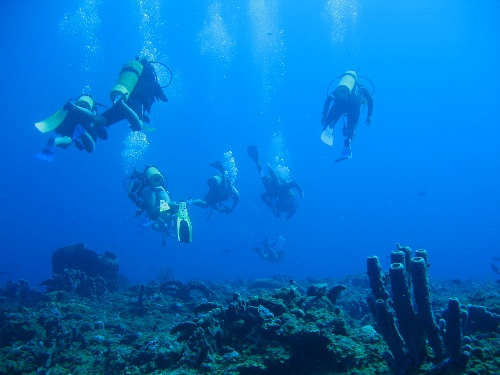 After a breakfast of cereal and grapefruits, we were met by our dive guide, Big Mike, who led us to some of the most dive sites we’ve seen yet. Ursa Minor was our first dive, and it went to 110ft, our deepest dive so far. We then had a surface interval and brunch at “In Two Deep,” a local diver restaurant. After we ate, we went to Diamond Rock and got to see five different sharks. After our dives, we went back to the boat for tuna melts and then worked on our research projects, followed by grill night. All in all, it was an awesome day.