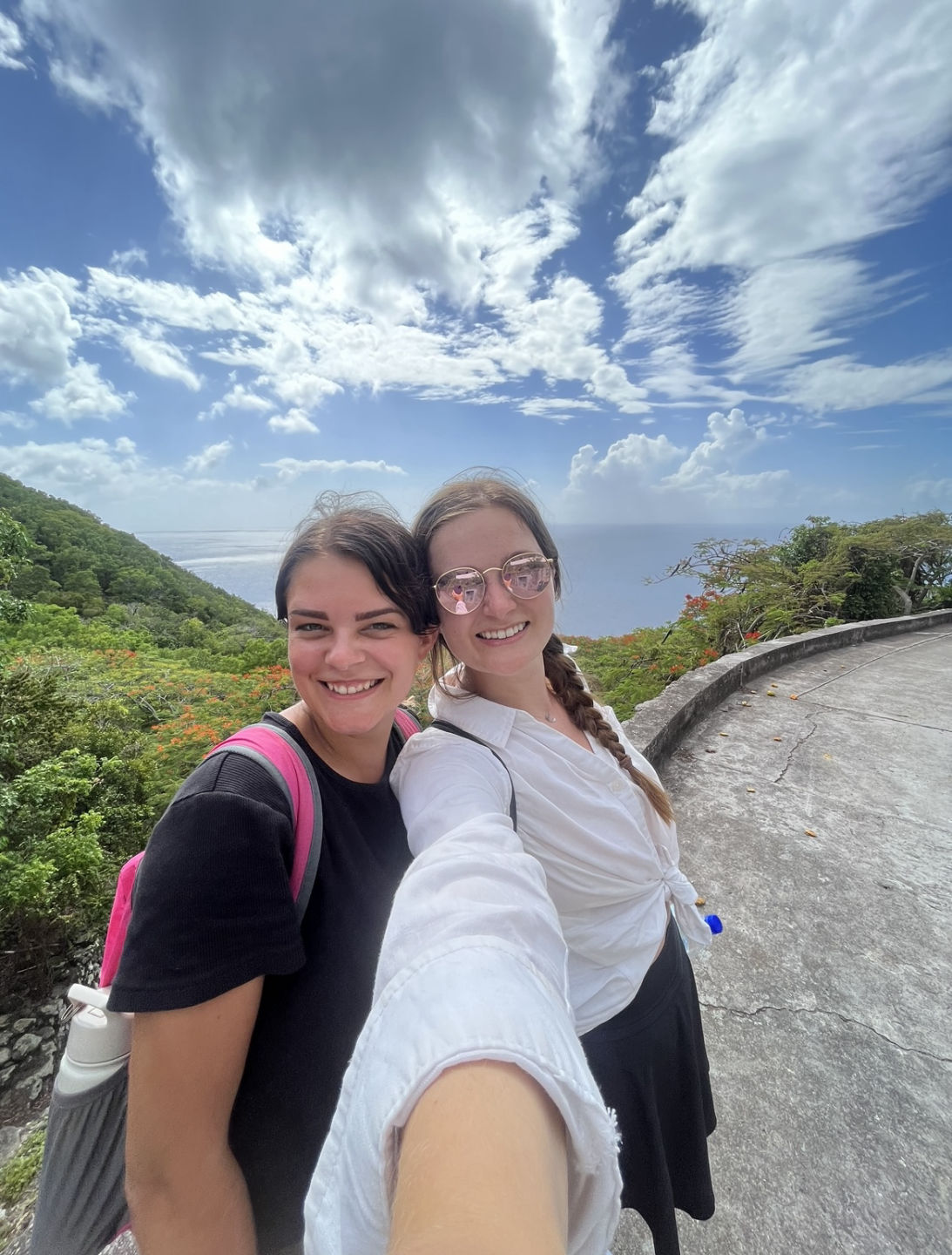 This morning started out with a “wet entry” into Saba! Everyone was packing as much as we could into dry bags and trying our best to make sure our stuff remained dry as the dinghy took us as close to shore as possible. Luckily Captain Nick was able to safely get us to waist-deep water, so we held our bags up out of the water and walked up the 500-ish stairs up the town. The first town, “The Bottom,” was the beginning of our journey all the way to the “Top” (which wasn’t actually named that, but it should have been). Some of us managed to hitch-hike our way all the way there, while a few others walked all the way across and up to the other town! We were split up for the majority of our time on shore, but reports at the end of the day all sounded super fun! Some people hiked all the way to the “tippy top” of the island, some ended up at an outdoor gym, and even a restaurant with a pool! Almost everyone spent way too much money on scuba dive merch from the Sea Saba Dive Shop, and now most of us have matching shirts (which was unplanned but a fun surprise to learn at the end of the day that we all had the same shirt!!).