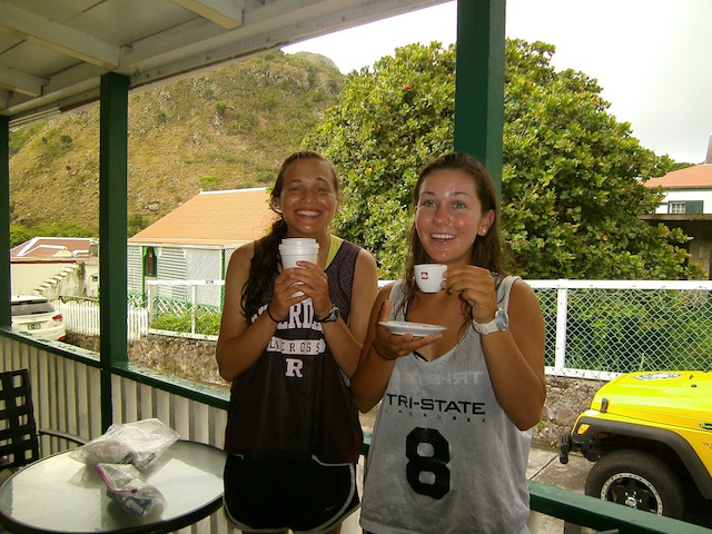 The day began with the remnants of the night’s rain still lingering as everyone got together, eager for the first day on land at Saba. After a day and a half tied to the mooring just off the coast by the primitive Ladder that leads up to the town of The Bottom, students were anxious to begin the 1,000-plus steps up. We were dropped off by the dinghy about 30 yards from the shore, where we then had to jump in and swim to the bottom of the steps of the original only entrance to the island. After the scenic morning trek up The Ladder, students made their way into town for a free day, wandering and stopping in local souvenir stores and coffee shops. The welcoming energy of the island was exemplified when students were able to successfully hitchhike in groups up to Windward via friendly citizens driving school buses and other vehicles. The afternoon was filled with beautiful views of fog-covered mountains and goats. Students were overjoyed to make their way to Jo Bean’s bead shop, where they had the opportunity to pick out beads to make personal pieces of jewelry, always to remember Saba. All 16 students made their way to a local restaurant called Pirates Bay for fresh fish, burgers, and even chocolate cake for one of the best meals with a view yet. It was clear that Saba’s unique landscape and open arms made it one of the favorite stops of the whole trip. The rest of the day consisted of making it back down The Ladder and onto Ocean Star again for some reading, Finding Nemo, and dinner of hotdogs with beans and rice. It was the perfect day to lead up to the crew’s last voyage day en route back to the British Virgin Islands.