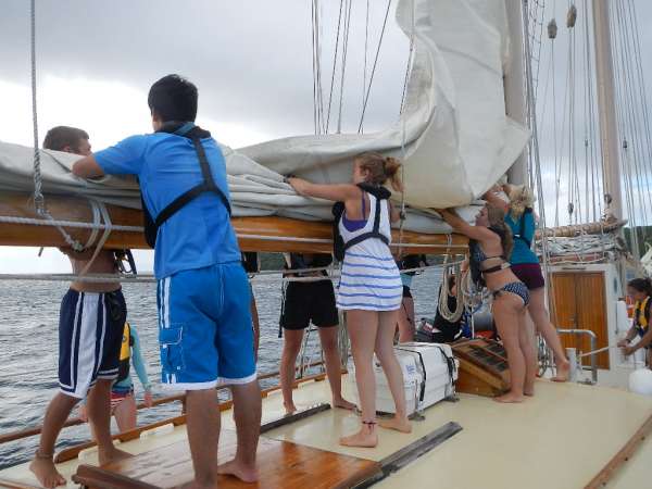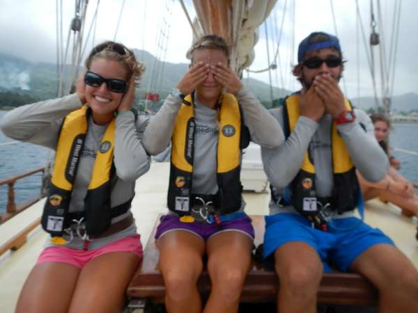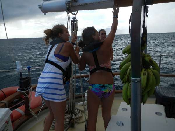 The time has finally come to say goodbye to Dominica and all of our friends there. It’s safe to say that the entire crew has thoroughly enjoyed their time here and count it as one of their favorite islands. After a delicious breakfast of chocolate chip pancakes, the crew started learning about biology in OCE class. After class, it was time to get underway. For this passage, I put the challenge to the crew to get the boat underway and sail completely on their own without coaching from the staff. It took a bit longer, but the crew figured things out and were able to get Ocean Star underway and sailing on their own. We had a great sail, making 7+ knots on our way to Les Saintes, a cluster of French islands just north of Dominica. Just before getting there, the crew was surprised by a fire drill, making sure that they were always on the ready in case of an emergency. Arriving at our destination, the crew took charge again and dropped and flaked sails on their own. With sails down, we did a bit more of a complicated anchoring process as we went stern to the rock at Pain de Sucre. After a good day of sailing and the boat secure, we had dinner and prepped to end the night with sailing class. All around, it was a great day, and we’re all pretty excited to be in Franceland.
