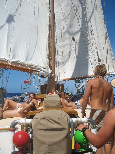 Today, we woke up to a breakfast of scrambled eggs, toast, and bacon prepared by our chefs of the day, Fresca and Rob. After breakfast and clean-up, the crew finished getting the boat ready to sail before we headed off to Saba. We had a nice morning sail, arriving at our mooring a little after 12 o’clock. The crew promptly took the sails down, finished putting the boat away, and crowded around the cockpit for a late lunch. After lunch, we had a break before an MTE review in the late afternoon. Simon and Dan helped us with chart plotting to help prepare us for the final exam coming up in a few days. Following MTE, we had another break before dinner and then had a marine biology class on marine protected areas, which was our last class aboard Ocean Star for the semester. That would also mean that today is my final day as skipper, so after an amazing semester, this is Rachel signing out.
