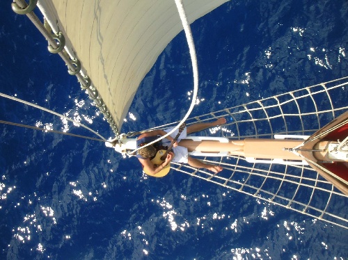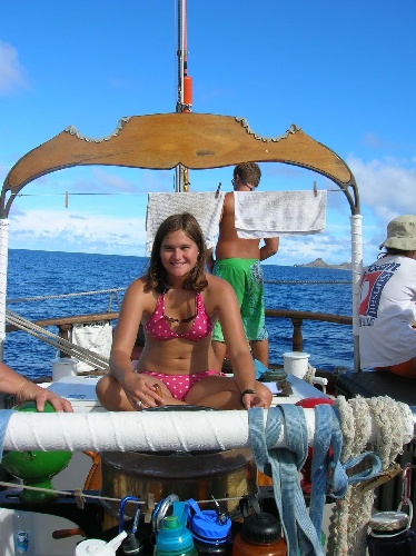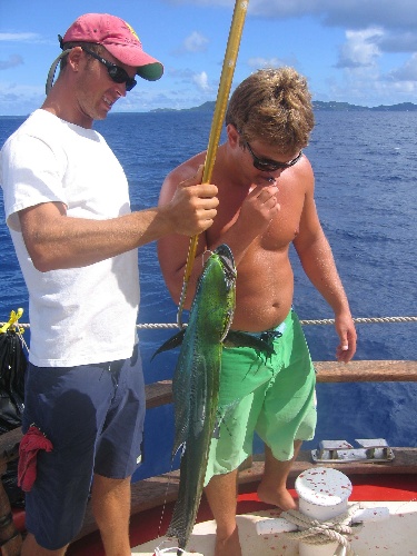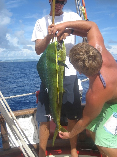 This morning, we woke up to a breakfast of eggcellent eggs. After clean-up, we sailed the 30nm to Statia. During the sail, the fishermen onboard caught a 15-pound Mahi Mahi, which caused much excitement and was one of the highlights of the sail. For most of the sail, there were light winds and clear skies, with the wind picking up as we rounded the point into Statia. Once we arrived in Statia, everyone went for a swim and hung out. For dinner, a feast was prepared with Ryan manning the grill and cooking the Mahi to perfection and with Adam and Holly in the Galley preparing some real Mashed potatoes and Vegetables. Today was a great day, with the topic of discussion mainly being that of disbelief as to how quickly the end of the trip was sneaking upon us.