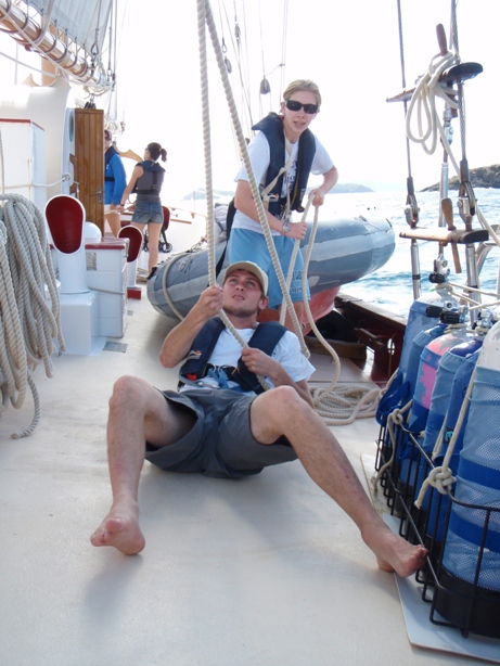 Today was a great day. It began with a filling breakfast of oatmeal before learning the ropes aboard our fine ship Ocean Star. From the jib halyard to the main sheet, those nautical nominations were mastered. After we could tell our stern from our dorados, we hoisted sail and tacked and jibed around the Anegada passage, eventually dropping anchor in Mountain Point, where we will spend the night. After a great chili dinner, our first Nautical Science (MTE) class will discuss what we accomplished today.