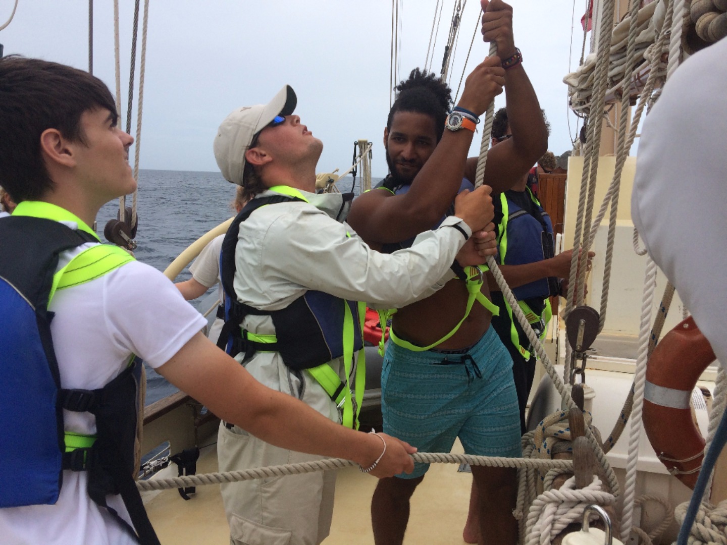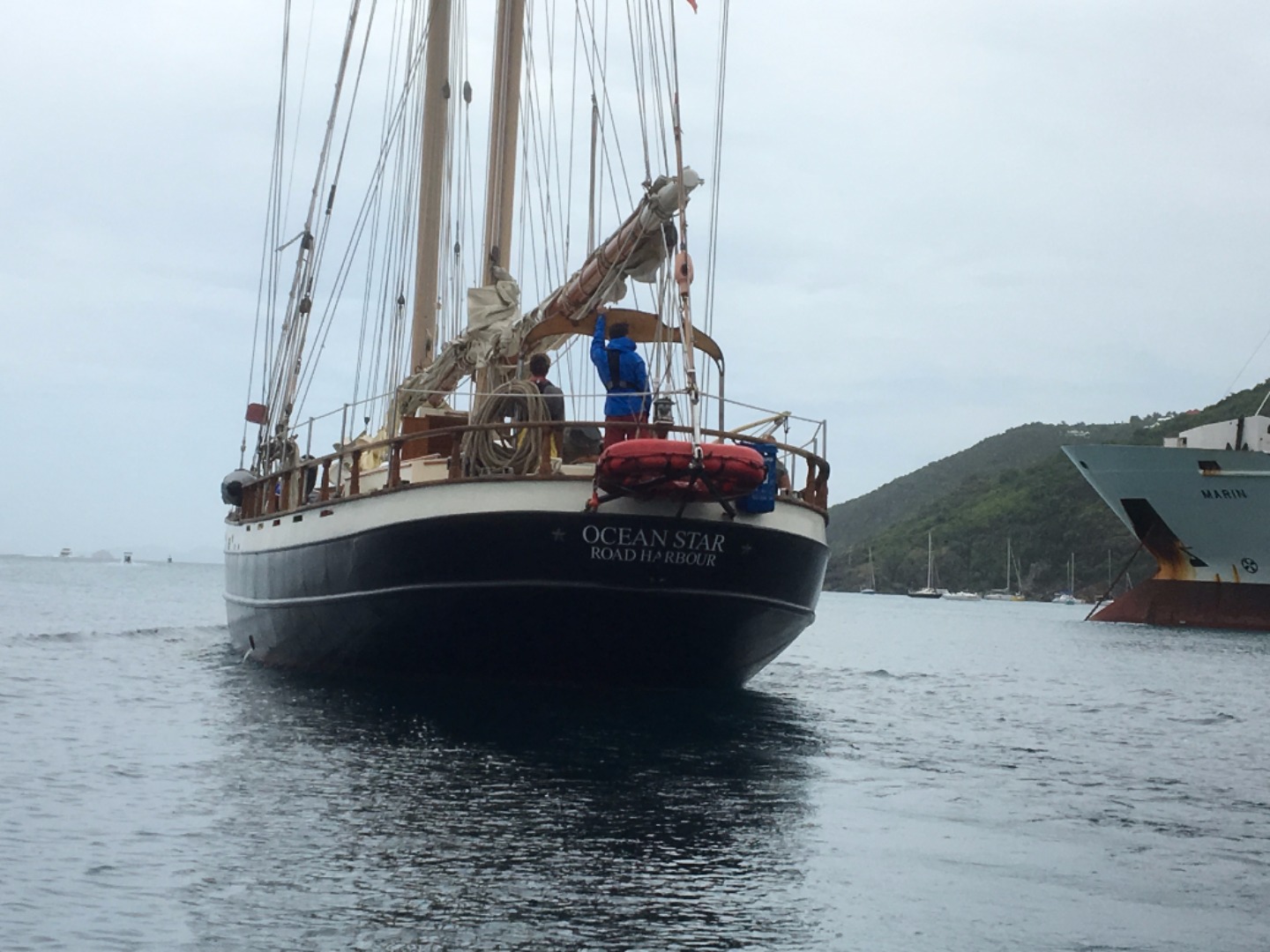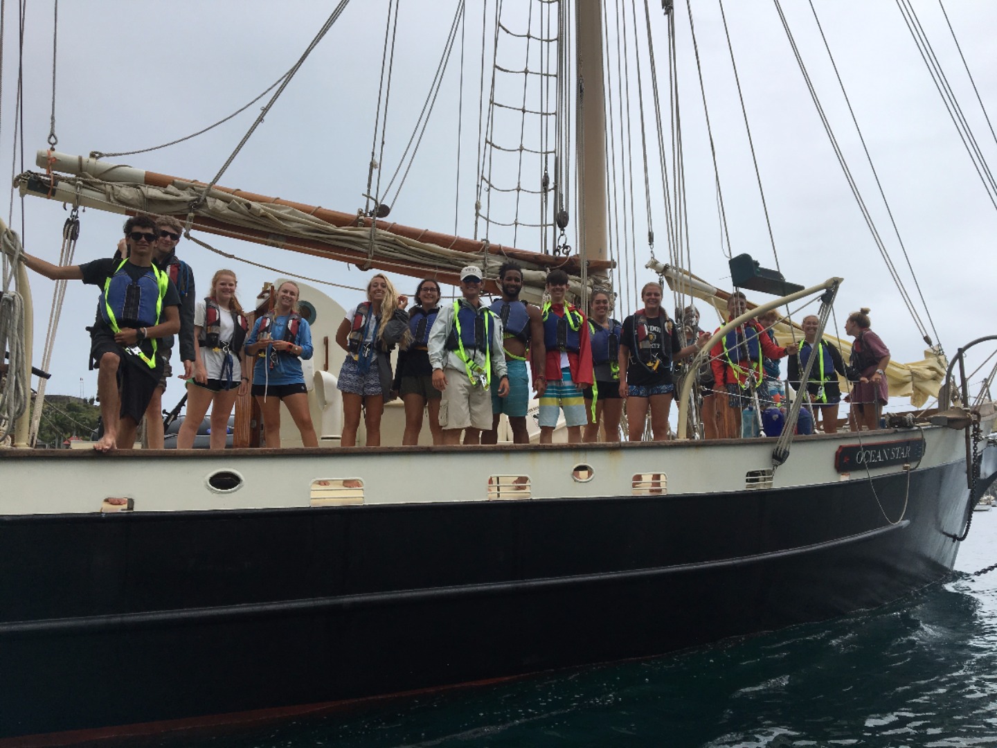 As the sun rose over the choppy waters of St. Barthelemy, we awoke to the sounds of seagulls chirping around Gustavia Harbor. As we got ready for the day, various passers-by walked by our docked ship with looks of awe. St. Barts is known for its fleet of dainty white catamarans, so Ocean Star stood out quite nicely as the sleek yet fierce pirate ship. For today’s itinerary, we were to set sail from Gustavia to Ladder Bay, Saba, a Dutch island just north of St. Barts. This time, however, there was a twist. The crew from Firebolt was coming over and swapping places with half of Ocean Star’s crew. They would learn how to sail a proper sailboat, and some of us would get hands-on experience with handling a catamaran. After some deliberation on who would make the switch, seven others and I packed up our bags and headed over to Firebolt to hang out with Aunt Ashley and Captain Kris.