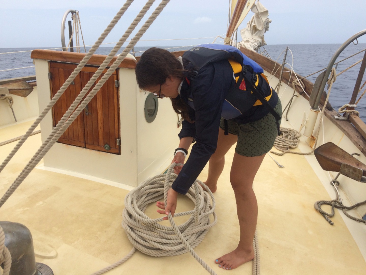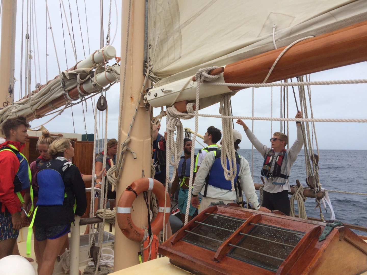 My oh my, was there a stark contrast in the sailing experience! For Ocean Star, it normally takes at least two hours for passage prep and then another hour to actually set up the sails. Meanwhile, Firebolt’s passage prep was minimal (we tossed our shoes under the salon’s table and called it a day), and getting the single sail up took a mere ten minutes. With the strenuous task of button-pressing over, we pseudo-Firebolters headed out, waving goodbye to the still-docked Ocean Star.