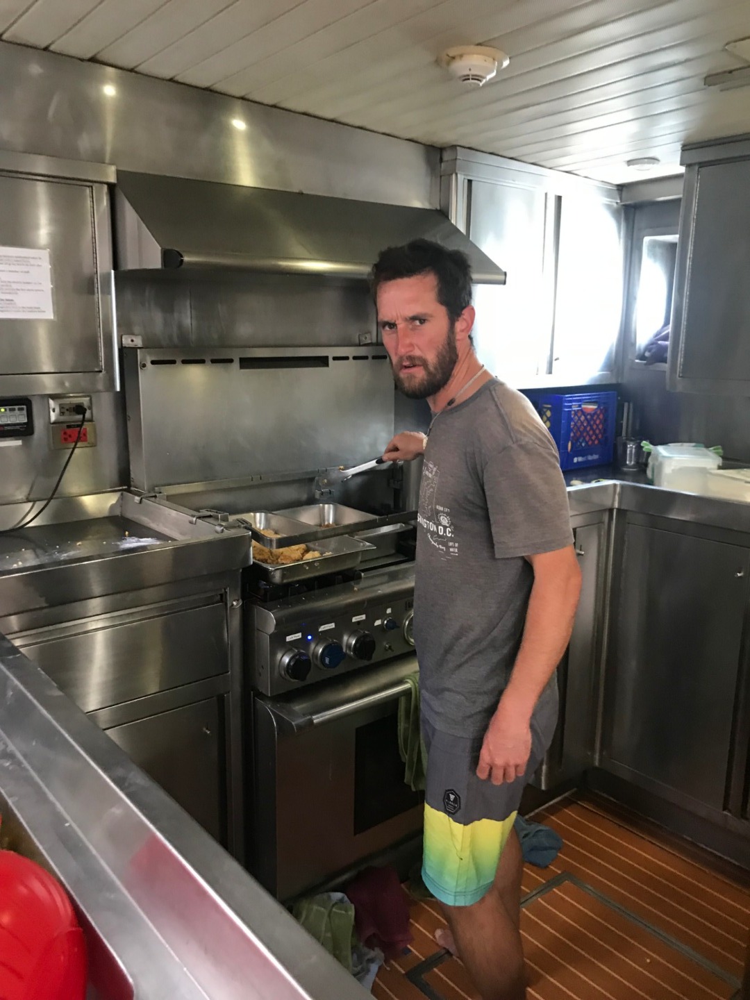 Today was a full day of excitement staring off with eating “egg in the middle,” “frog on a lily,” or “egg in a basket.” There was much debate over the proper name for this delicious breakfast. After we had breakfast, we got ready to go to Tenerife, which was about 50 nautical miles from Gran Canaria. While we were underway from Gran Canaria to Tenerife, we had our last watch team watches, as we will be mixed up and put into new watch teams before we leave for the Atlantic crossing. It was an awesome time being on watch and having fun with the new family that I get to be a part of. As we got into the harbor, one of our windlasses didn’t function quite right, and our anchor deployed before we intended it to. We had to tie a line to the chain and pull up the anchor back into its correct place. Imagine almost 30 people lined up along the deck, hauling up an extremely heavy anchor all in sync, under the instructions of “2-6, 2-6, 2-6” from our fearless captain Wiggy. It was a bonding moment for us all. Like a pro, Wiggy was able to dock the boat like it was nothing after we got the anchor back where we wanted it. Once our amazing captain docked our boat, we had cake for his belated birthday, which was delicious. The cake we had was a chocolate base with peanut butter frosting and chocolate chip on top. Thanks, Dana and Jonas, for the sweet treat! Now we are about to have a study party in the salon. We have one more midterm exam to take as well as several papers we are all working on, so Amanda is making popcorn, and we are going to buckle down to get some of our work done!