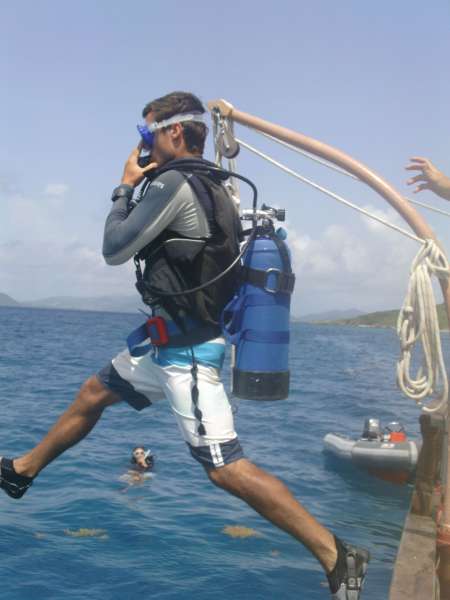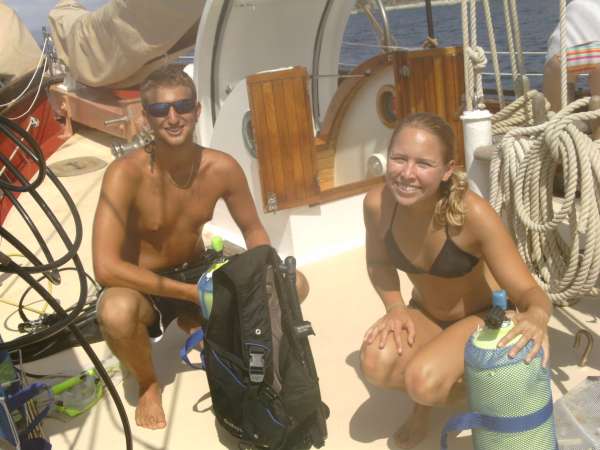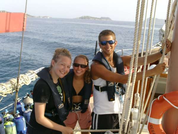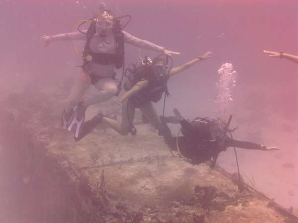 This morning, everyone was abruptly awoken by a strange voice yelling something about a “bilge.” As we all stumbled up on deck, still confused and half-asleep, we learned that Kevin had surprised us with a bilge alarm drill. This drill served as a lesson to us that we must always be ready to jump up from whatever we are doing, including sleeping, to respond to an emergency situation, or even just to help sail through a sudden storm. After the drill, it was time for breakfast, and “conveniently,” we were already awake. Any attitudes from our slightly rude awakening quickly dissipated as we sat together and talked over a delicious breakfast of bagels, eggs, and yogurt. After breakfast was finished and everything was thoroughly cleaned, it was time to prepare for the morning’s dives. The open water students were ready to complete their Open Water Dive 4, and the certified divers were just excited for another awesome dive. The open water students went first, trying out their “giant stride” entries for the first time off the starboard side of Ocean Star. The rolling waves and height of the rail made some nervous, but everyone made it into the water safely and with great form. The certified divers set up their gear while waiting and were in the water as soon as the other group surfaced. The dive site was an airplane wreck with a beautiful artificial reef growing around it. As a certified diver, I was very excited to swim through the wreck. It was a very strange feeling, though, to swim from the clear Caribbean waters into a darker, enclosed space where everyone’s bubbles were dancing on the ceiling and moving the old panels. As we exited the plane, we saw the exterior was covered with beautiful purple sponges and other brightly colored coral. Exploring the reef, we saw so many fish that it looked like we were swimming through an aquarium. A few fish I identified were parrotfish, damselfish, and my favorite, fairy basslets. Once all the divers were out of the water and gear was stored, we headed to Spanish Town.
