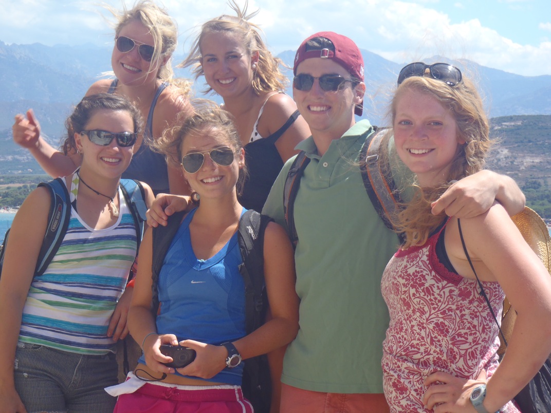 After hours of hiding down below from the squally weather, the crew of Argo poked their heads up on deck after dinner to find the perfect sailing conditions. Within an hour, the anchor was hauled up, and five of Argo’s six sails were set. Slowly sailing out of the harbor, we patiently waited to no longer be in the lee of mainland France but out in the open sea where the wind and waves are our only company. Just as watch team three took the deck, the sails filled, and soon, we were cruising between nine and eleven knots. So far this summer, it has been hard to find the wind necessary to move us through the water, but not last night. Even with a reefed main, Argo sailed through the night on a beautiful beam reach, making the 90-mile passage in less than 11 hours. As the sun rose over our new destination of Corsica, the crew rounded the bend into our new home anchorage. With one day down already in Corsica, we have seen citadels occupied for hundreds of years, fireworks to celebrate the summer season, and a stunning mountainous landscape overlooking an endless number of white sandy beaches.
