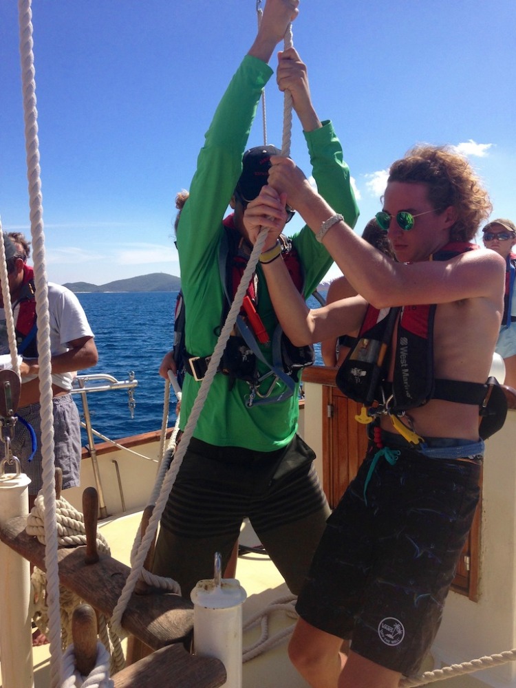 We cooled off before dinner with our regular ocean showers, accompanied this time by a barracuda circling the boat and a huge remora resting on the hull. After dinner, we had our first maritime studies class and then got into our bunks to rest up for another exciting day on the sea.