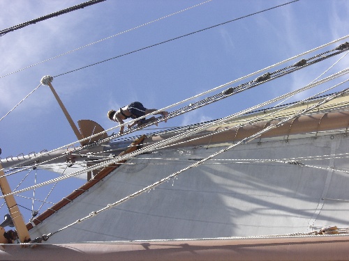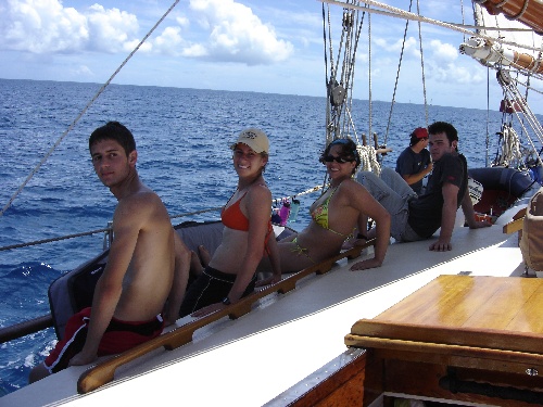 We began by singing a slightly off-key round of Happy Birthday to Anthony and eating cereal. Immediately after breakfast (and handing in our OCE literature reviews), we set sail for Pigeon Island, Guadeloupe. Although there was no wind to fill the sails, we made good use of our time during passage, making baggy wrinkles and cleaning the binnacle. Once we anchored and set up Camp Ocean Star on arrival, some of the crew went to shore to explore the tiny shops and snorkeling opportunities. We learned more about coastal navigation in MTE class that afternoon and then took a much-needed saltwater shower. We celebrated Tony’s 21st birthday with brownies and another birthday song. But the post-dinner celebration was most memorable when Dave premiered yet another slideshow with various Star Wars and Jurassic Park tunes to complement the masterpiece. We finished the day with OCE class. It was a great day.
