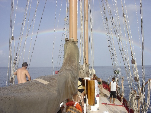 I woke up everyone at 06:45, sitting on the dock of the bay by Otis Redding in Dominica. Most of us had to go to Pancho’s house to pick up our much-needed laundry, then back to the boat to prepare for departure. On our way out, we had some engine trouble, so for about an hour, the crew hung out on the deck while Boomer and Winston were doused with fuel, trying to fix the problem. We finally got underway at about 11:00 and made it to the Saints by 17:00. After dinner, we had a good OCE class. Then, it is off to work on our literature reviews.