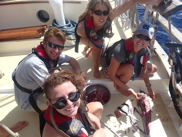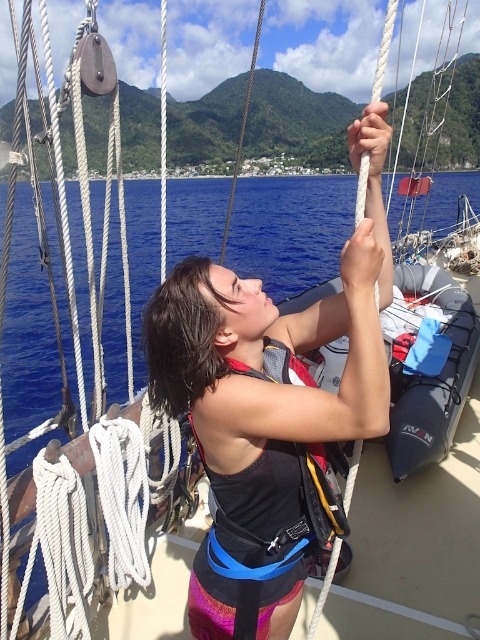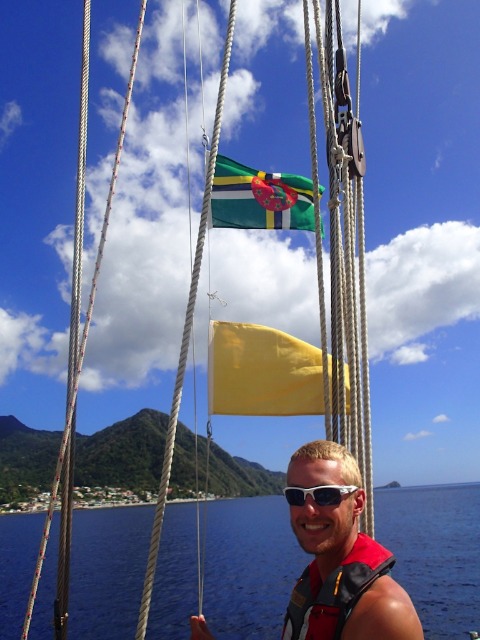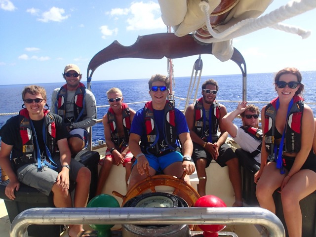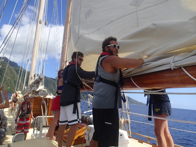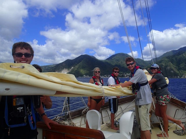 Today, Ocean Star set sail again on a 6-hour passage from Martinique to Dominica! It is really becoming evident how much more efficient we have been getting when getting the boat prepped and the sails up. We got to enjoy some 8-foot swells at points, which made for quite the rocky and wet voyage; at one point, the whole boat got soaked by a massive wave! Once we arrived, we anchored in a Mediterranean fashion and began a quick boat wash before having an OCE lecture about tsunamis and tides. Finally, we got to have a delicious dinner and night out at Dive Dominica, which is always welcome after a day-long passage. We are all looking forward to what Dominica has in store for us over the next few days.