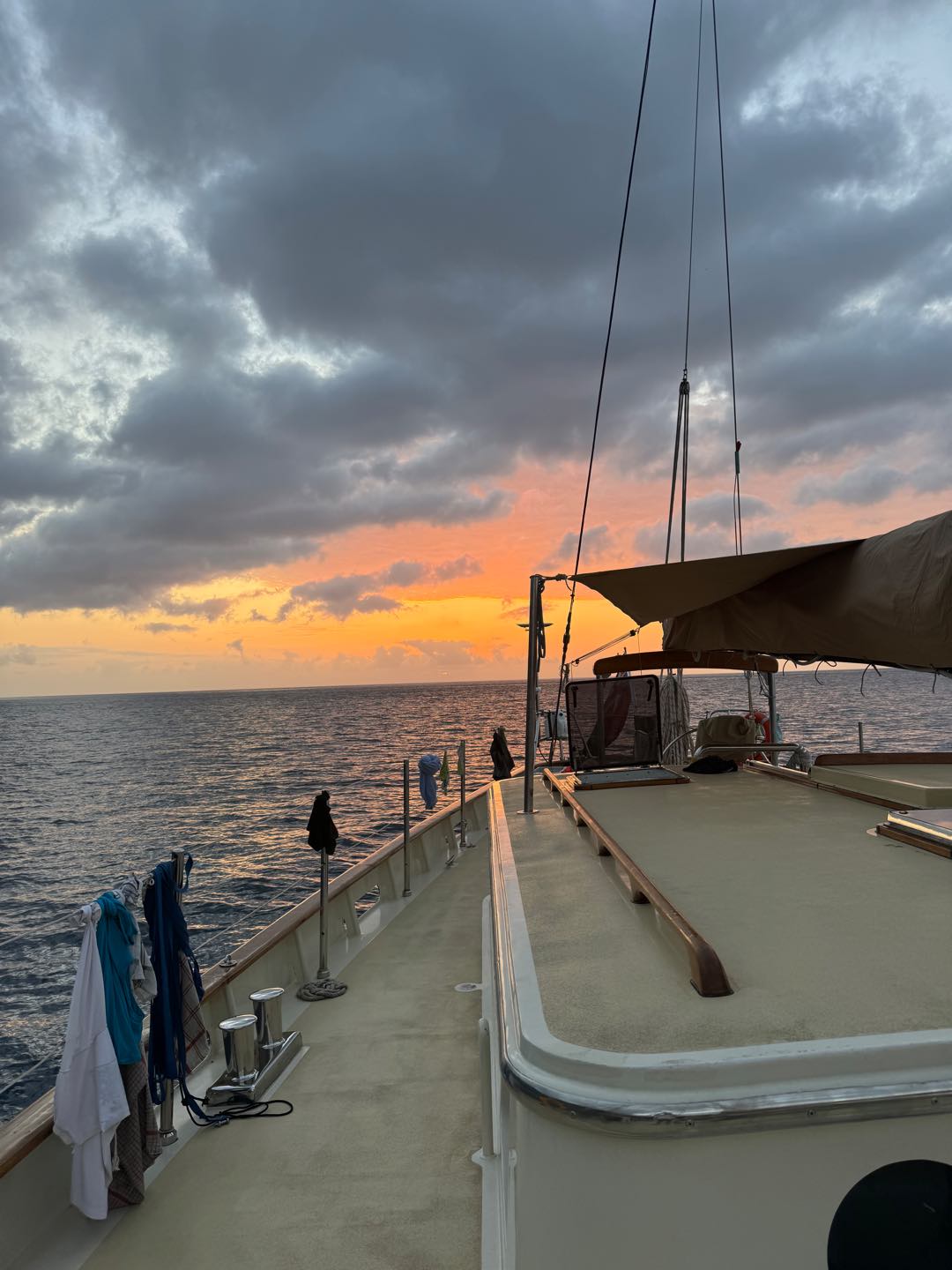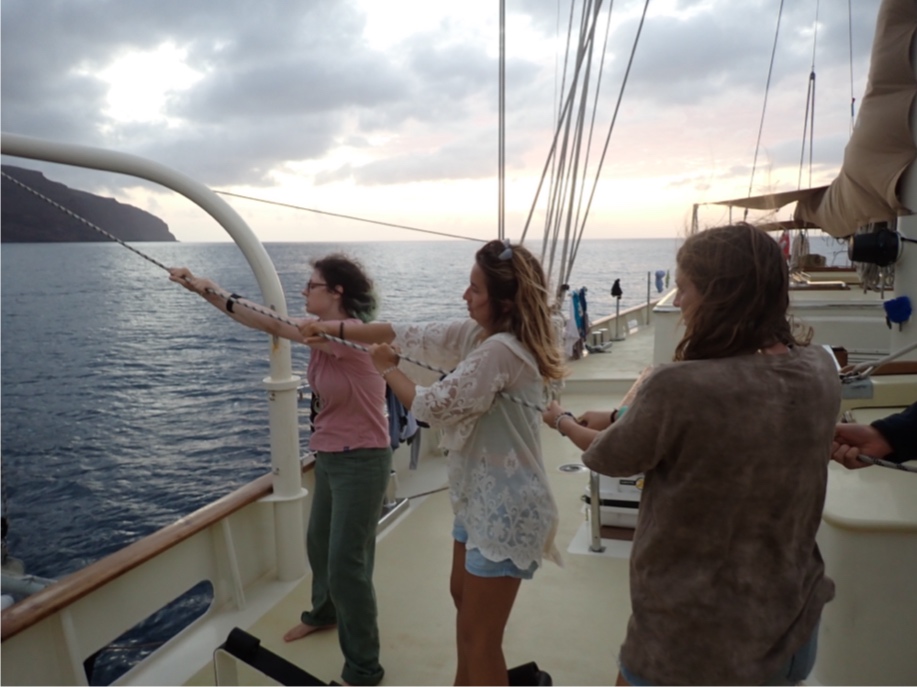 We saw land! Early this morning, watch team three get to do our first anchoring. It was so cool waking up at 4 am to watch and coming on deck to see land for the first time in 13 days. Cecily shined the light ahead to check for ships, Maddy struck the anchor, allowing it to drop, Benny eased the anchor down, and I shined a light to make sure the anchor was let down the right amount. After that, we started getting the boat set up to be on anchor for the next two days. I woke up the rest of the crew at seven, and we all enjoyed a pancake breakfast made by Zac and Benny. After breakfast and clean up, we headed over to customs. The water was so clear, and there were colorful fish everywhere.