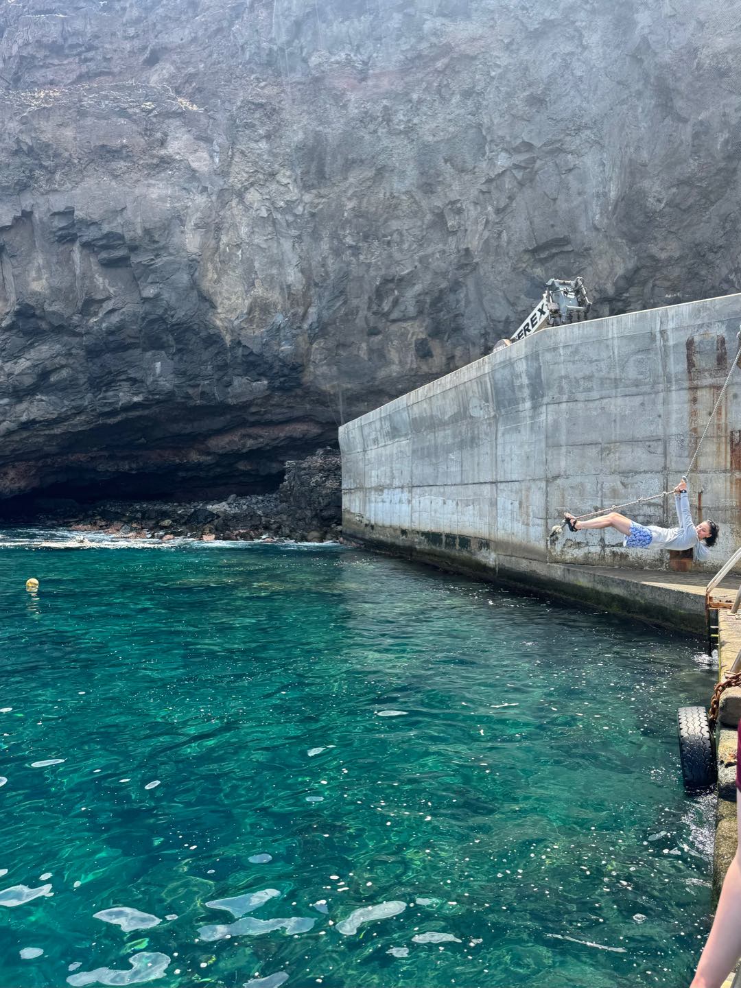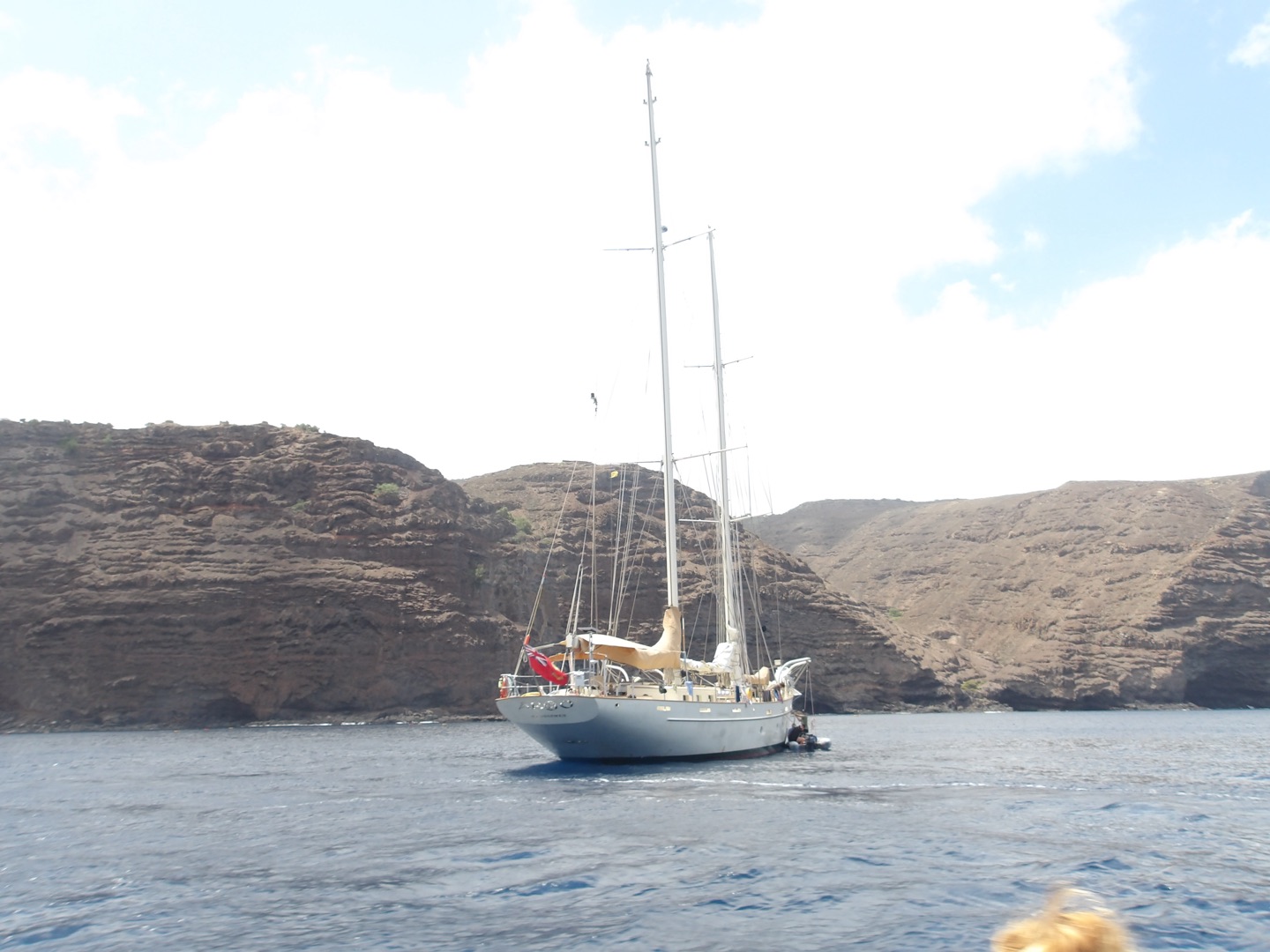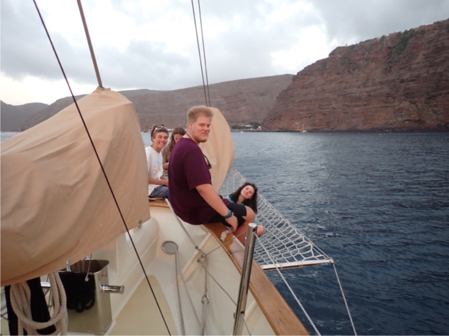 Isaac took an unintentional swim when stepping off the dinghy. The group of local children that were sitting on the dock yelled, “Big man in da wata!” It was great. The island is beautiful and filled with life. When we all got back to the boat, we did some “BA,” which is boat appreciation, where we cleaned, scrubbed, and polished Argo. In the afternoon, those who were dive-certified went for a scuba dive along the coast while others stayed on the boat to do some research project work. We all took our first ocean showers of the trip and had a great time jumping in and out of the water. After that, we all went on land for a whale shark and seabird presentation from a member of the Saint Helena National Trust. He taught us all about the whale sharks that come to the island and the project they have going on. You could tell he was so passionate about his job and loved going into detail to explain every question we asked. We then went back to the boat for a beautiful sunset and a great dinner together. We got our times for anchor watch and ended the day by finishing clean up. It was a great first day at Saint Helena!
