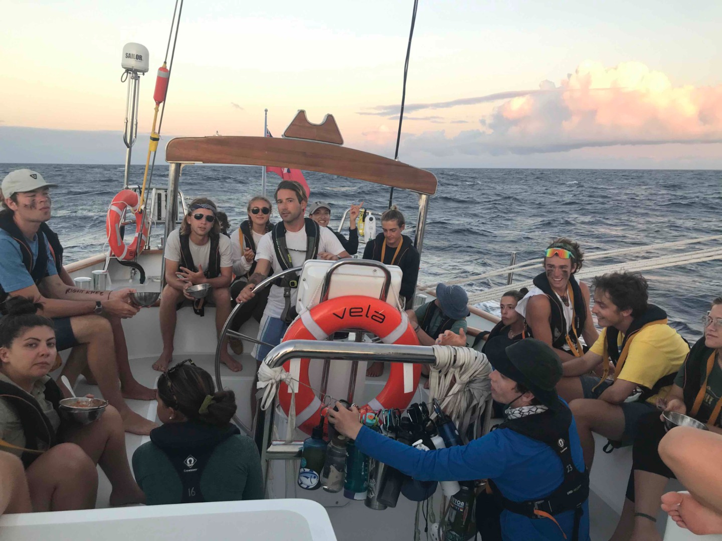 Picture three: everyone hanging out in the cockpit after dinner