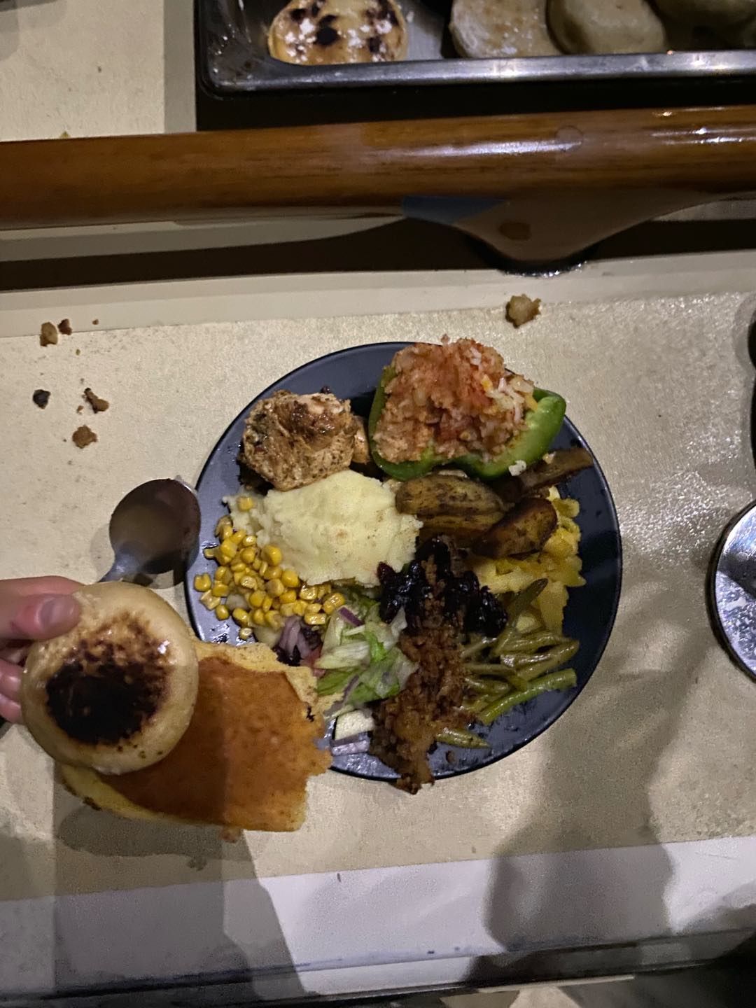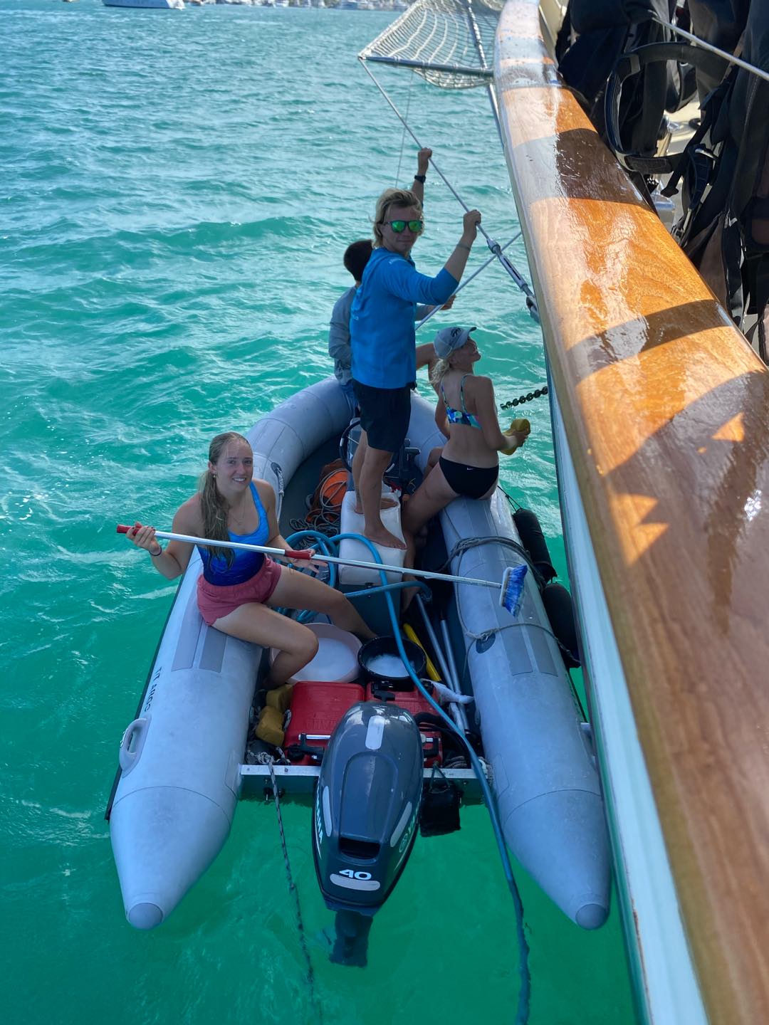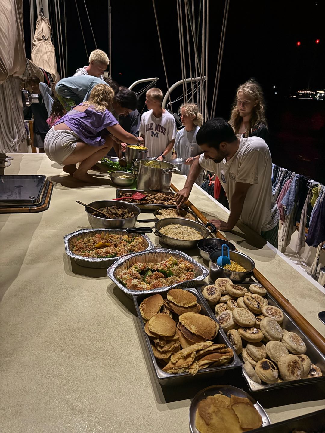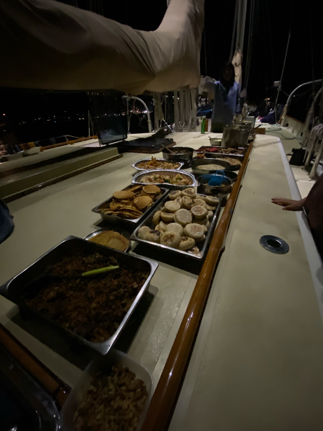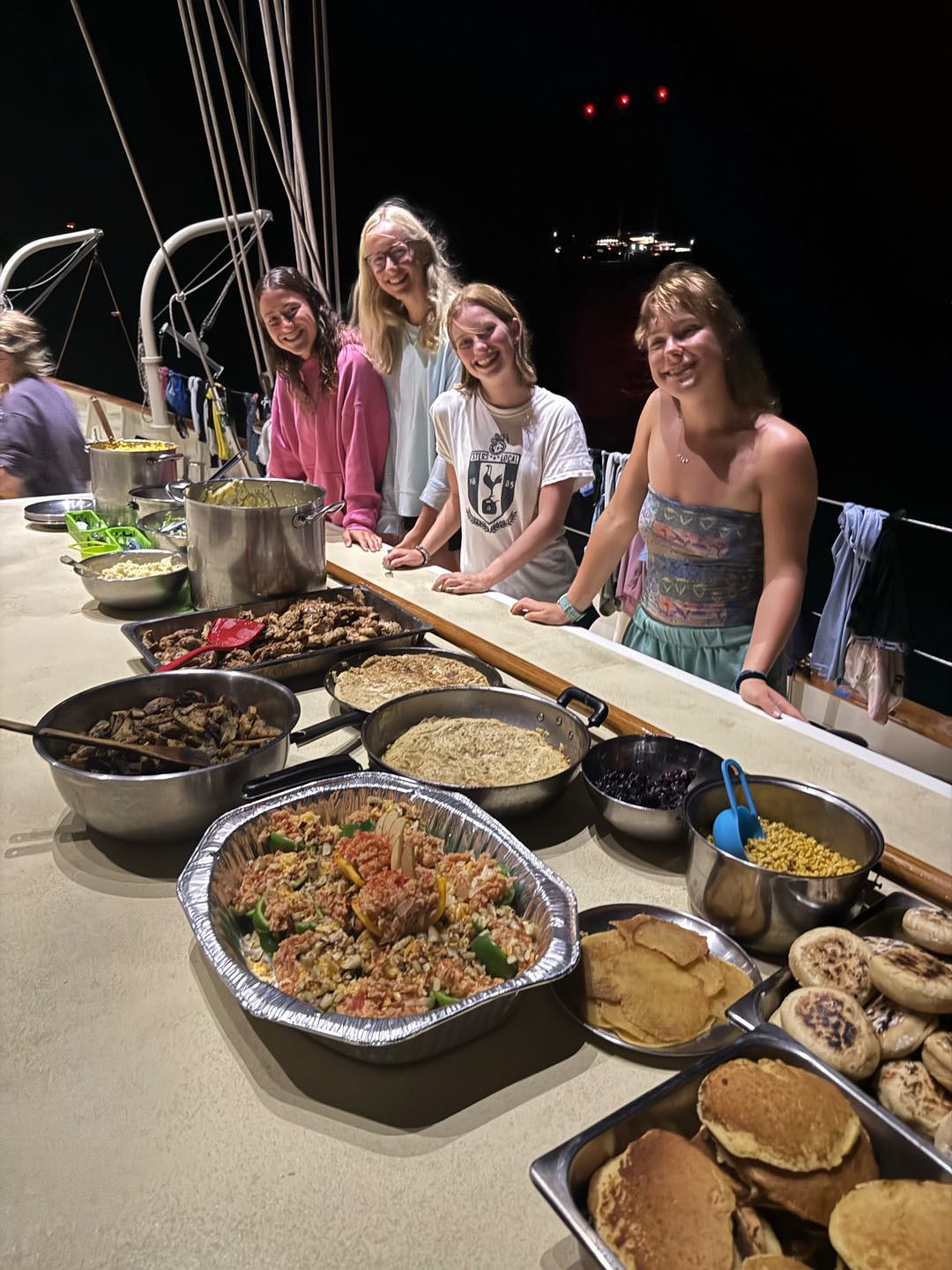 After breakfast, the rest of the morning and most of the afternoon consisted of cleaning, diving, and lots of cooking to prepare for our feast. I got to help with scrubbing the outside of the boat with Charlie and Amelia, which was really fun. I rewarded myself with a swim in the ocean after all the hard work. I did my best to soak in one of the last few ocean swims I will have before going back to the cold and snow of Canada. I had some much-needed rest time, watching Beauty and the Beast before our Real, Fake Thanksgiving feast. I dont think anyone can comprehend just how much food there was. I have never eaten this much in my life, and its going to take at least a few days to recover. Thank you to everyone here who put in hours of work in the galley over the past few days to give us this meal that could feed an entire village. With the amount of leftovers we have, anyone would ask if we actually ate anything at all. I am so thankful for the food and for getting to spend Thanksgiving with my boat family since I was not at home to celebrate. Its going to be nice to go home close to another big holiday, so I can be surrounded by my family soon after getting back.