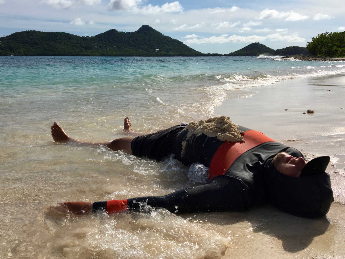 Today we moved from Tyrrel Bay to Sandy Island, a small and leisurely journey that didn’t take more than an hour. Everyone was restless during the morning marine biology lecture due to the announced plan for the afternoon. As we reached Sandy Island, we had to take the boat in a few circles to recalibrate the compass. Once it was complete, some students swam straight to the island with the help of masks and snorkels. The water was crystal clear, making it easy to observe the diverse colors of the marine life that we floated over. No one sped through it but instead took their time, and if one of us saw something interesting, it was shouted to the rest of the group to share their findings. The island was not that big, but it was a perfect size for a peaceful walk around, and the trees produced more than enough shade for a nice nap. The breeze was cool, the water was not too cold, and everyone was having fun. Some took naps, some sat and talked in the shade of the palm trees while sipping the sweet nectar from a fresh coconut, and some were playing a carefree game of frisbee. Life could not have been more pleasant. Soon enough, the time came when we had to head back to the boat, yet everyone still had the peace in their minds that the island offered. To finish off such a day, a fantastic meal of turkey tacos with freshly made queso and guacamole was created by Dylan and his sous chefs. The last thing is a leadership class; then, we will all retire for the day.