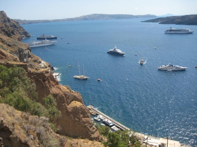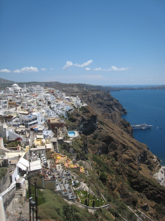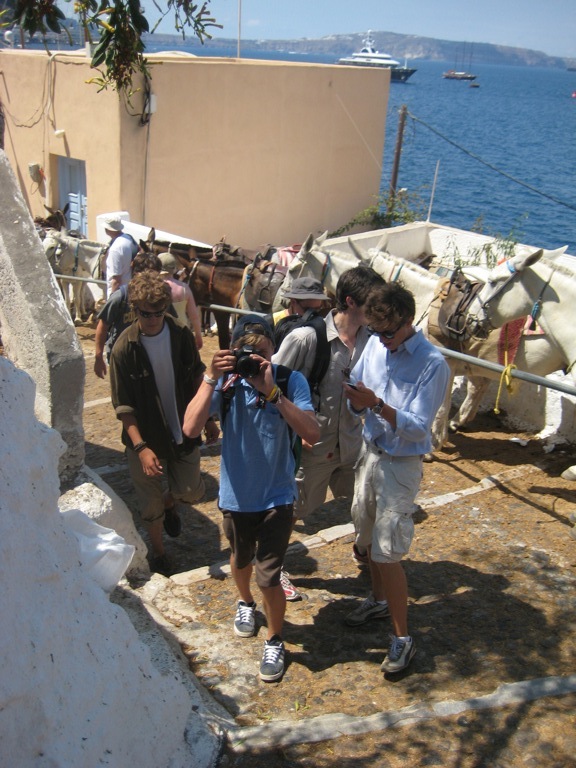 We started the day off by sailing to Santorini. We had breakfast underway and got off Argo as soon as we were at Santorini. We were allowed to explore the beautiful mountaintop town of Thira. Standing on Argo, you could look up and see the white buildings on top of the mountain. We had the option to ride donkeys to the top. The view from the top was amazing! After several hours, we had to make our way down the mountain and to Argo for dinner. We were gathered for ‘boat appreciation.” In other words, we cleaned all of Argo. We finished this great day by attending class.