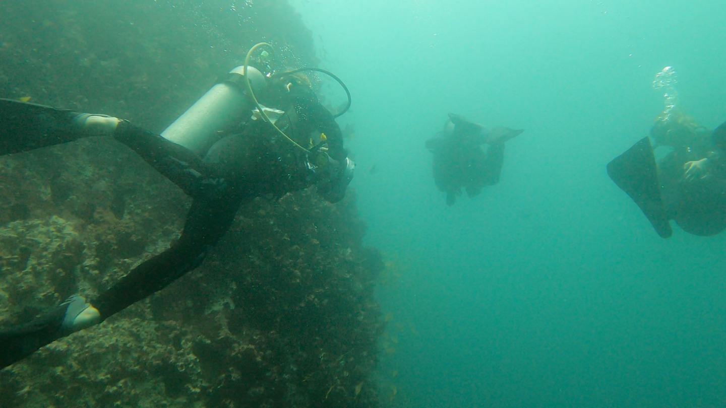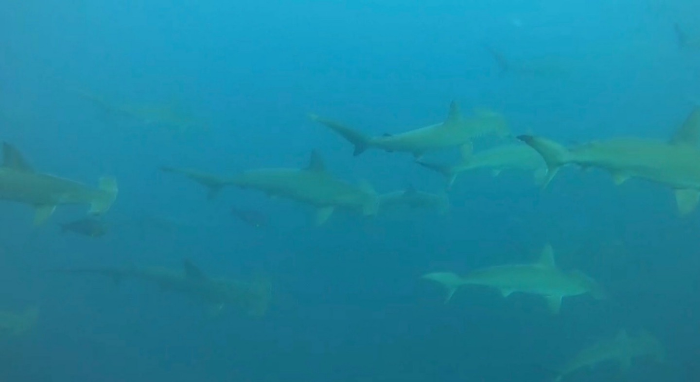 We all hung out on the boat and had some cinnamon rolls and tea while anxiously awaiting dive #2. As soon as we jumped in, there were 10 – 20 sea lions all swimming up to us, around us, showing off with their flips and bubbles. It was surprising that our screams of excitement didn’t scare them off, but it almost as if they were as excited to see us as we were to see them. Although we could have stayed with them for hours, the hunt for sharks began about 10 minutes in. The current was pretty strong, so as we were drifting along the wall, Edison got our attention, and we turned around, and there it was. A SCHOOL OF HAMMERHEADS. A wall of them. 30+. Beautiful. Unreal. Honestly, the best moment of my life. I’m still not over it. We kept swimming, and it kept getting better – more sharks, more turtles, a couple of sea lions, and just walls of fish. We motored back to the pier and spent the bus ride back gawking about how unreal of a day that was.