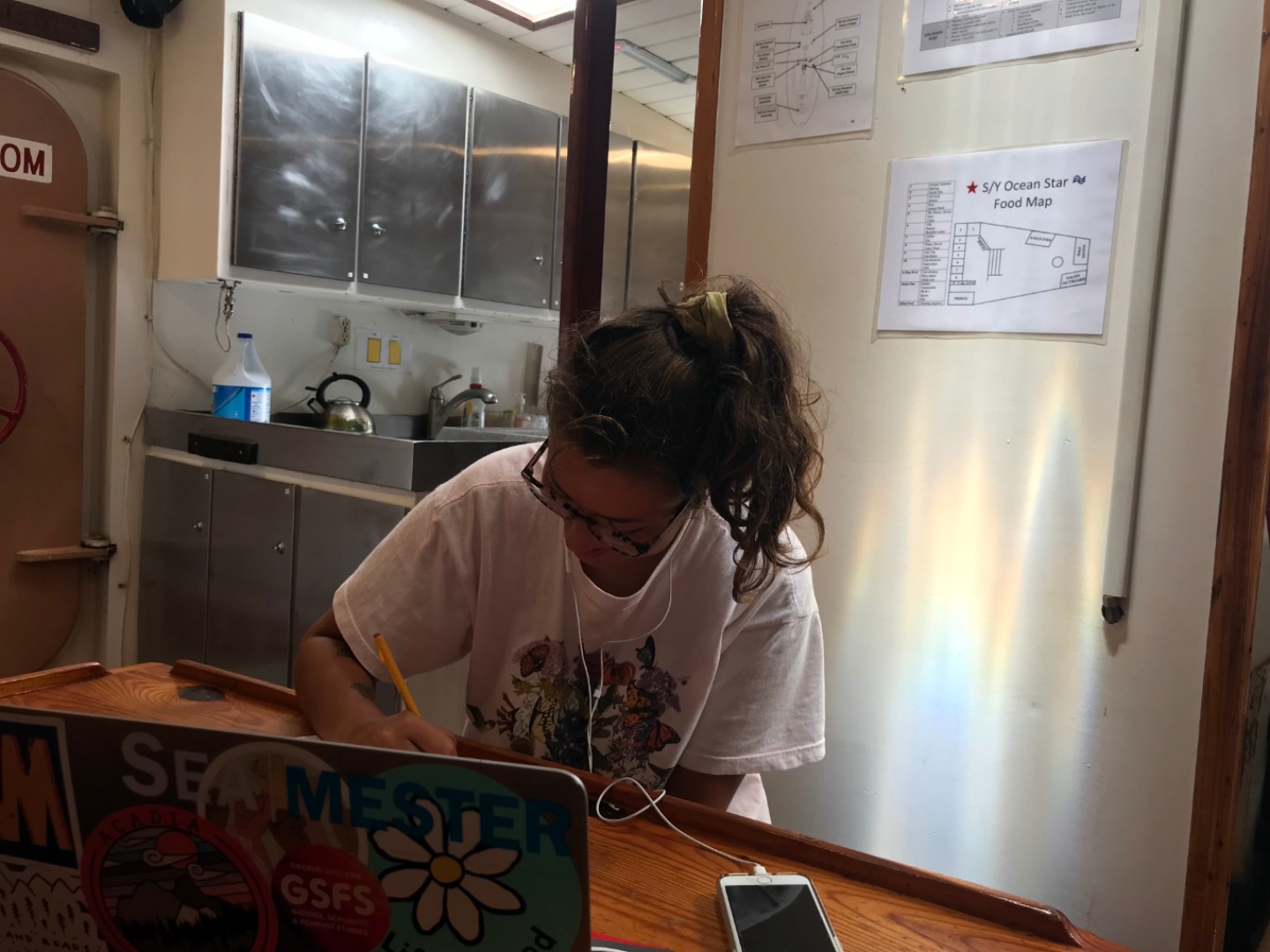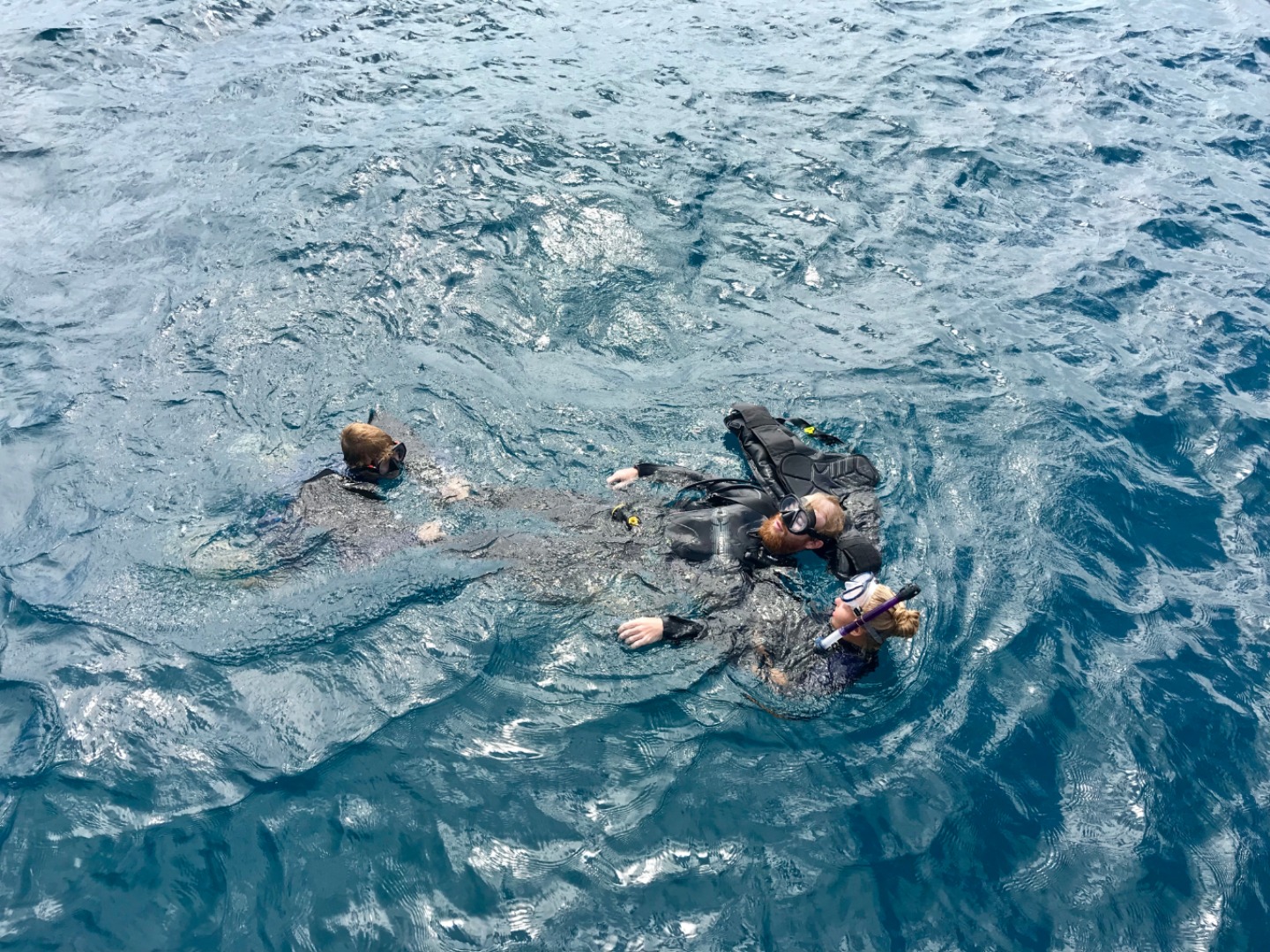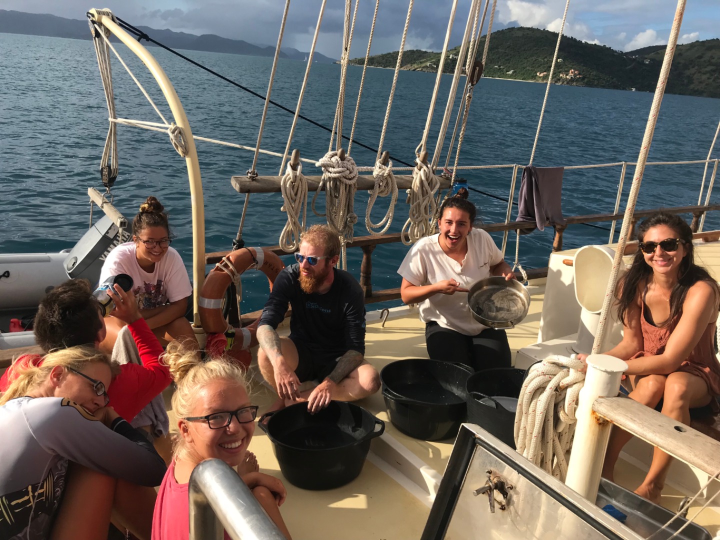Today, we woke up to yet another lovely breakfast from the beautiful chef team of Ian and Dasha before heading out to our last scuba dive of the semester. We explored a site called the Playground (which, to our surprise, had no swing sets or slides). We saw sharks and stingrays before hopping back into Irving. The training rescue divers in the dinghy (Allie, Will, Sam, and Sinclair) had yet another dive scenario when Ian and Carolyn pretended to be panicked and tired divers and had to be pulled back onto the boat. When we arrived back at Ocean Star, Steph asked the familiar, “Has anyone seen Steve?”, prompting the rescue divers to begin another rescue scenario. They all jumped in to help “save” Steve, and I can gladly say they successfully recovered him! Yay, rescue divers! After lunch, we all got in our last-minute revisions for our Oceanography final exam. We had lemon chicken pasta for dinner, then headed down to the salon for our exam. After, we all relaxed and were both relieved and sad that our classes were finally over, and we had no more assignments to procrastinate over together.