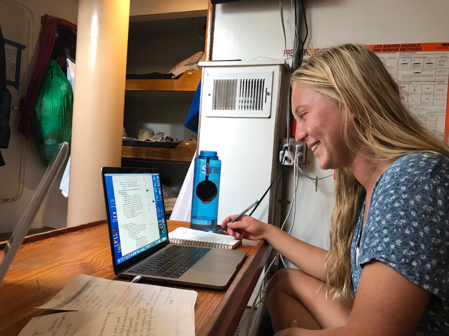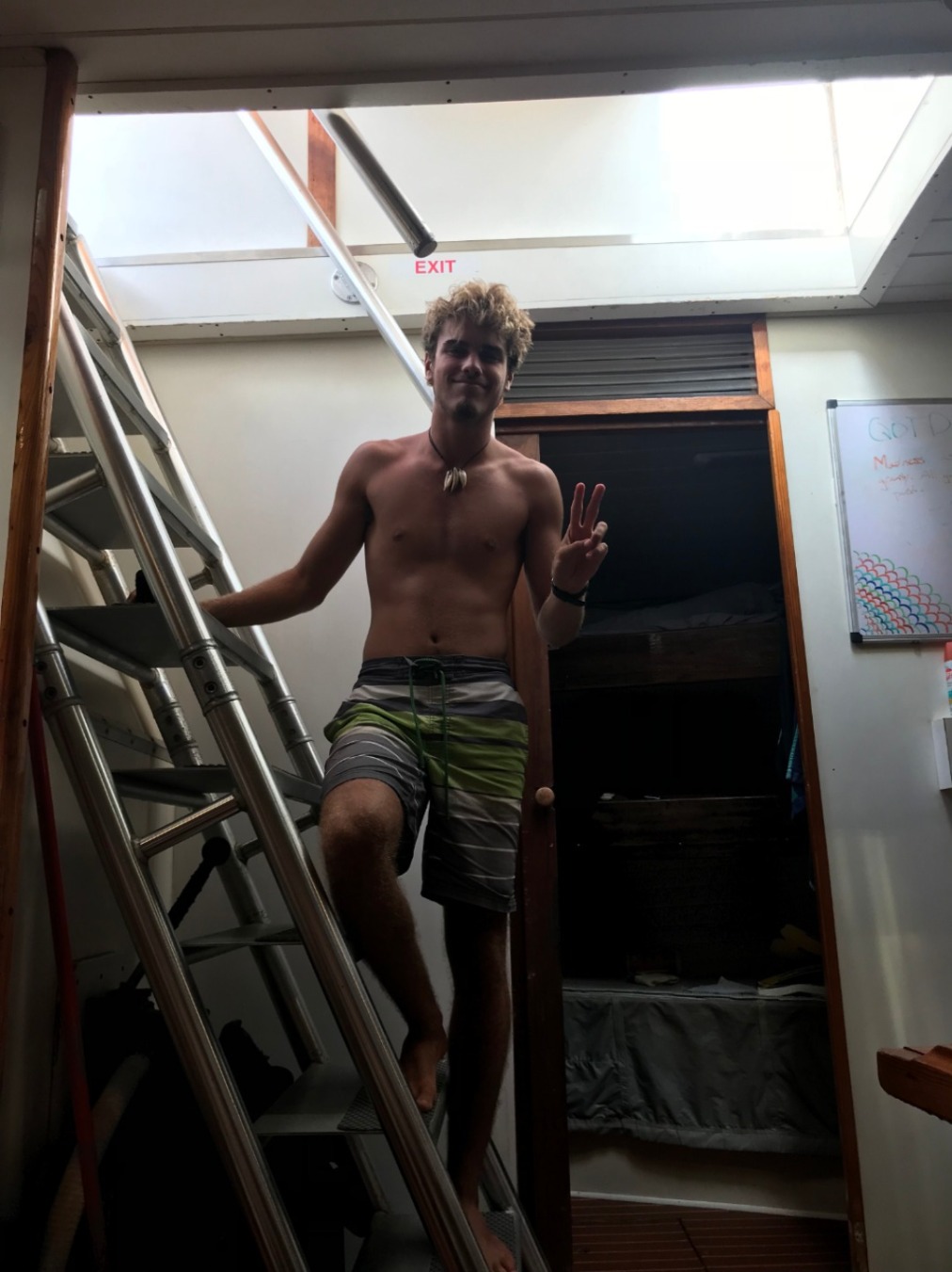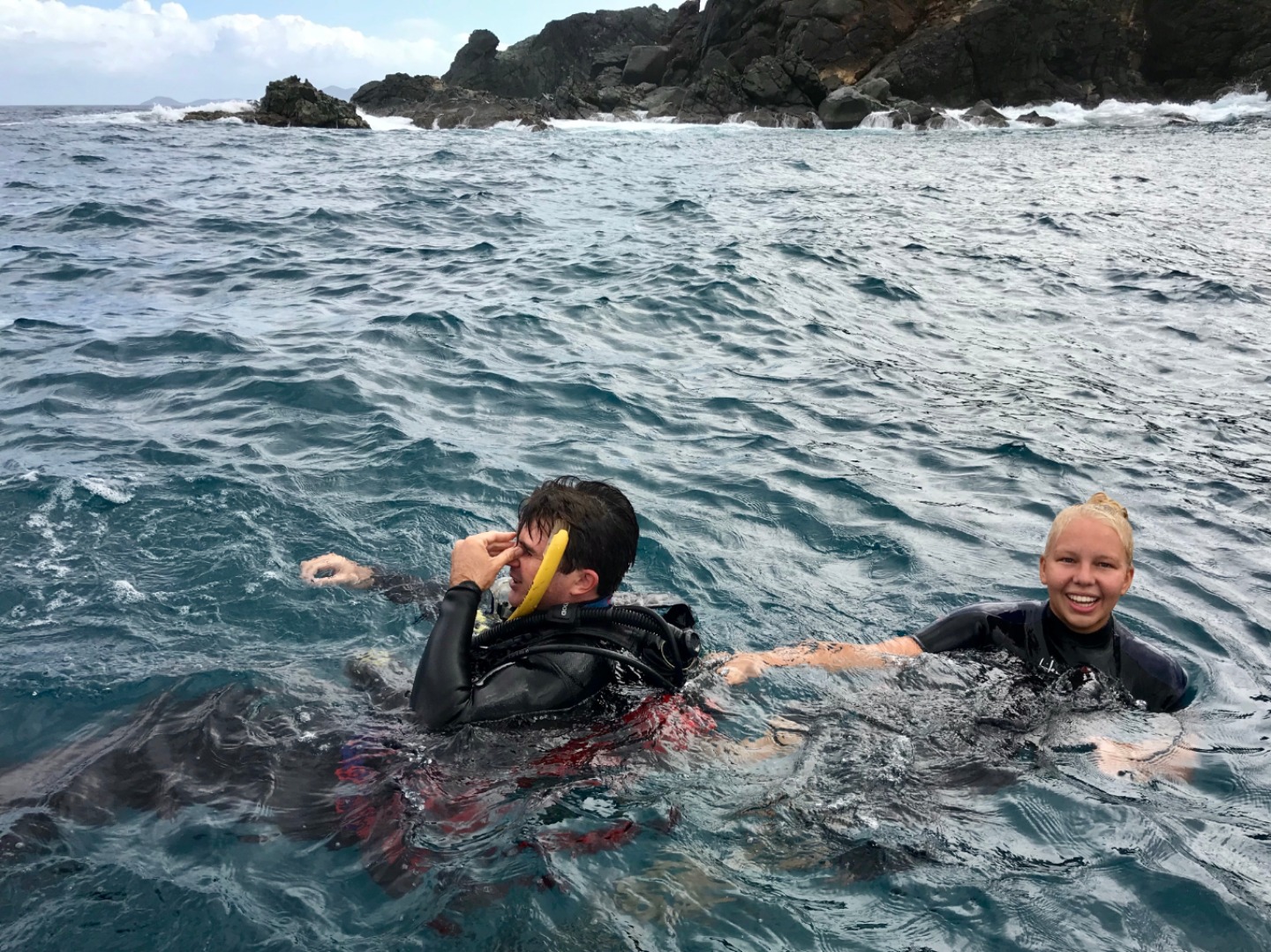 Today, we woke up to yet another lovely breakfast from the beautiful chef team of Ian and Dasha before heading out to our last scuba dive of the semester. We explored a site called the Playground (which, to our surprise, had no swing sets or slides). We saw sharks and stingrays before hopping back into Irving. The training rescue divers in the dinghy (Allie, Will, Sam, and Sinclair) had yet another dive scenario when Ian and Carolyn pretended to be panicked and tired divers and had to be pulled back onto the boat. When we arrived back at Ocean Star, Steph asked the familiar, “Has anyone seen Steve?”, prompting the rescue divers to begin another rescue scenario. They all jumped in to help “save” Steve, and I can gladly say they successfully recovered him! Yay, rescue divers! After lunch, we all got in our last-minute revisions for our Oceanography final exam. We had lemon chicken pasta for dinner, then headed down to the salon for our exam. After, we all relaxed and were both relieved and sad that our classes were finally over, and we had no more assignments to procrastinate over together.