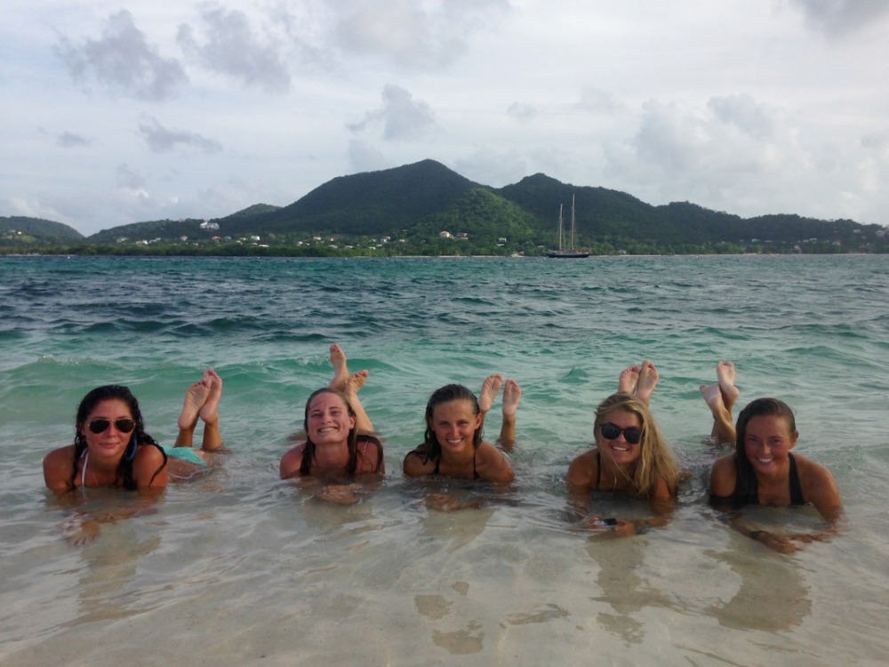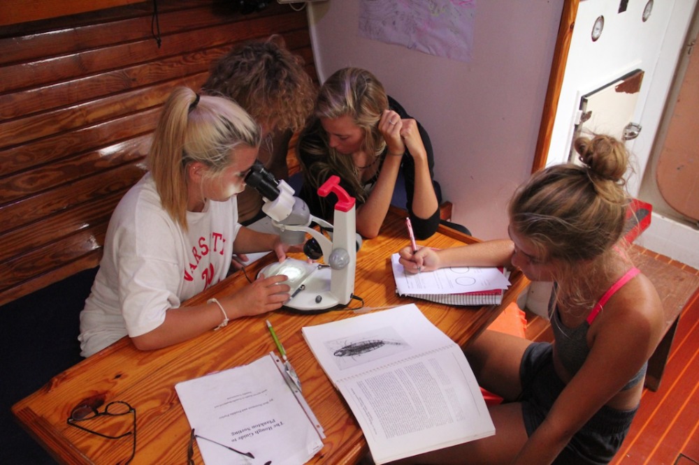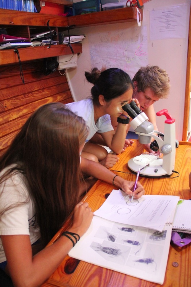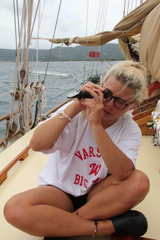 Today, we started the morning with our first marine biology/ oceanography lab! We got to use a bunch of cool new instruments and tools to test and observe the phytoplankton and zooplankton located right here, off Sandy Island. We looked at the plankton with microscopes and tested the ocean waters’ salinity, phosphate, dissolved oxygen, and other components. All the tools were really cool to experiment with. After lunch, we were allowed beach time! Sandy Island is small but very beautiful, surrounded by many patches of coral reefs inhabited by lots of fish. On the island, the boys threw around a football while the girls participated in a Zumba class led by Carolyn! Others stayed back on the boat to study, but apparently, they enjoyed a study break of watching us dance on shore! The rest of the day was pretty laid back. The afternoon was dedicated to schoolwork and studying for our first marine biology exam we had after dinner. At the end of the day, we were all very relieved to complete our first exam!