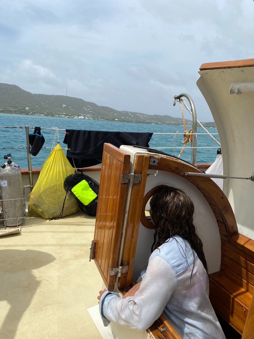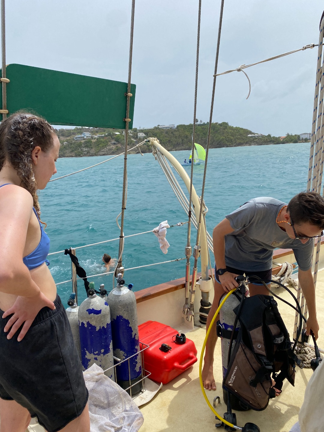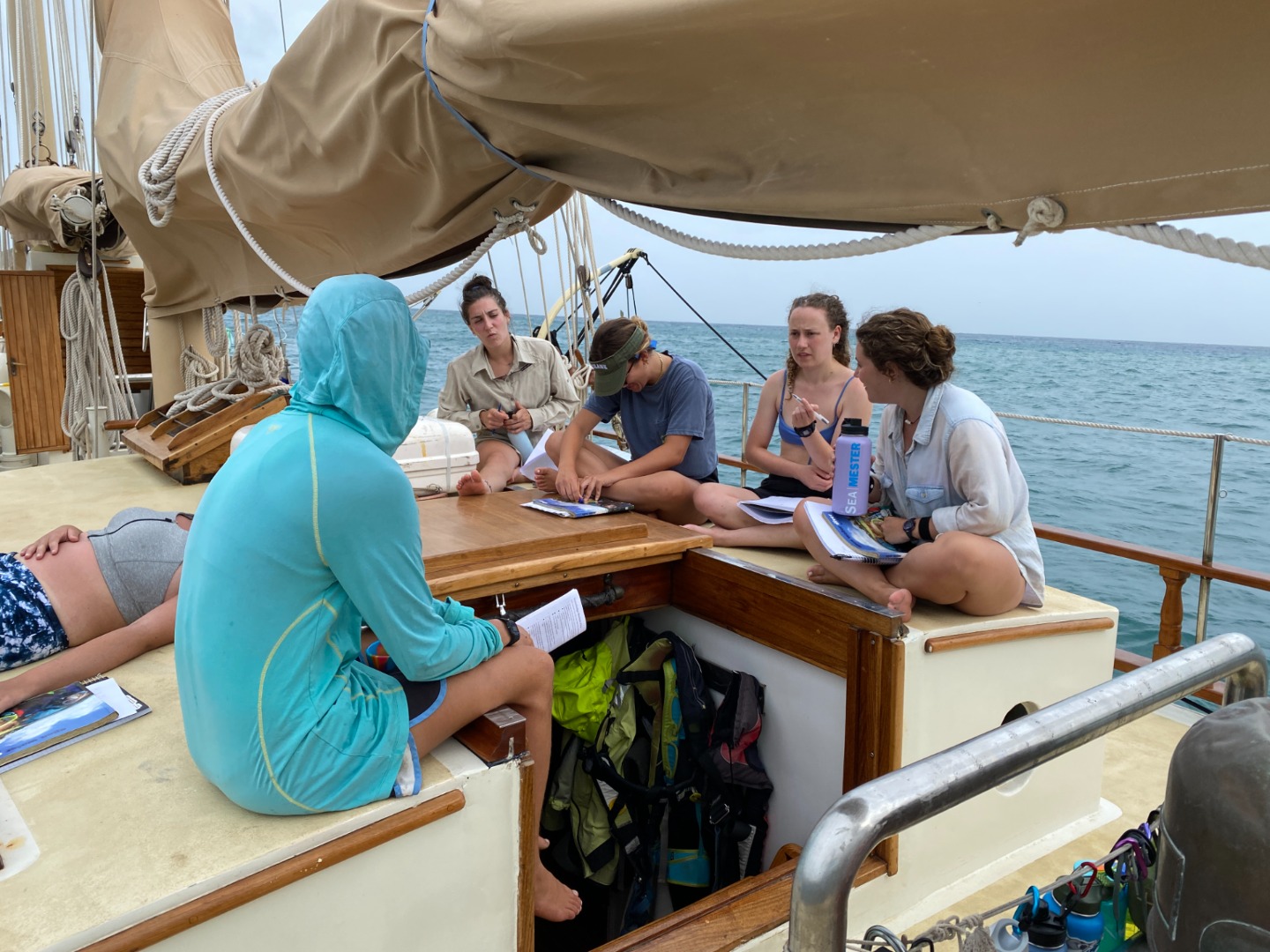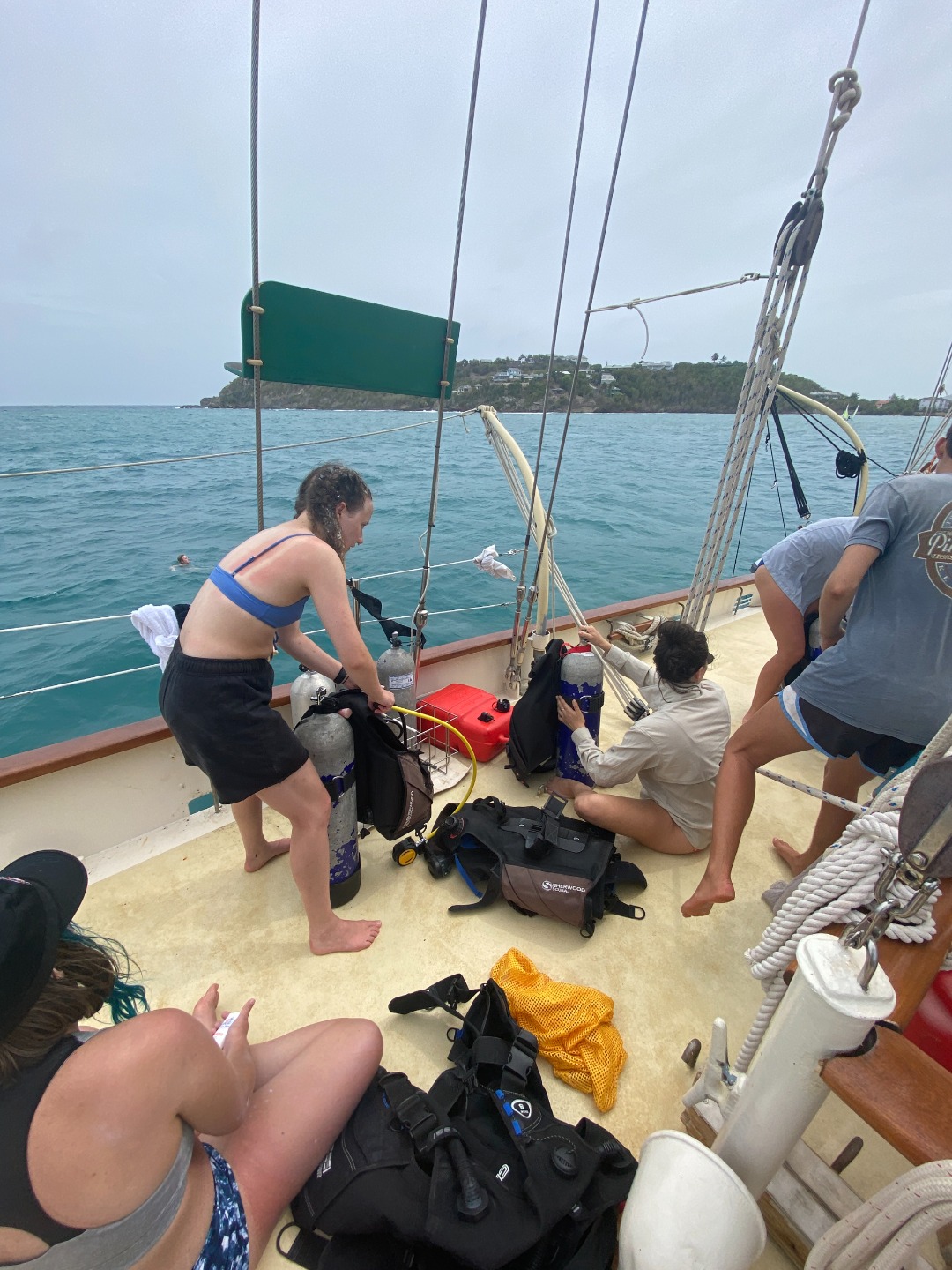 We soon returned to our scuba study, learning about all kinds of equipment and practices. Afterward, we all jumped in the water, because after all, what’s a day at sea without a refreshing plunge? As another one of Ash’s delicious meals came to a close, we all chatted about our favorite TV show characters. It seems impossible how many of us happen to share such a love for Schitt’s Creek and Avatar.