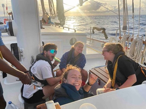 For me, though, the best part of the passage comes after that when it seems like the natural state of the world to have salt spray on your face and see the stars every night. When you feel like your whole world is just a blue disc extending to the horizon with these people who you suddenly know almost better than your own family. When we forget where we were going in the first place.