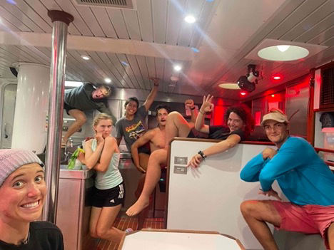 Around five days in, people start to come alive. People laugh in the cockpit; small tasks like making coffee in the morning dont require huge mental strength. Suddenly, you want to do more than just eat or sleep. At that point, people begin to think about their arrival, what they will do, and what food they will eat that they miss, how they will sleep all night in a flat bunk. Things we didnt know we would miss that we take for granted in our stationary, land-based lives.