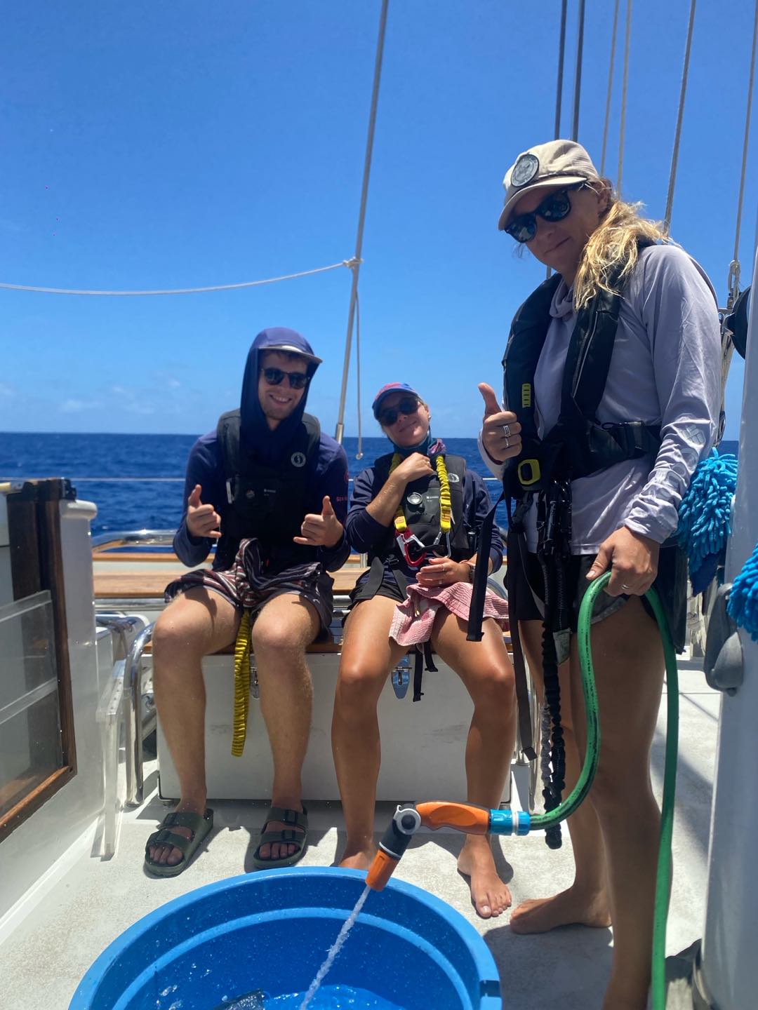 As we are slumbering away, watch team 1 is back at it on the morning of 8-12, dealing with the soggy anchor locker that is now empty of water but full of smelly dock lines and fenders. So they then take it all out and hang it on the lines. Soon after, we all made it back to the cockpit for a refreshing pasta salad made by our very own Vera. Oceanography was ridiculously quick. Kyler seemed to really want to get out of there fast. Appreciated by all. Leadership swiftly in tow. Classes came to an end, and almost every student was in the salon, grinding away at their lit reviews.