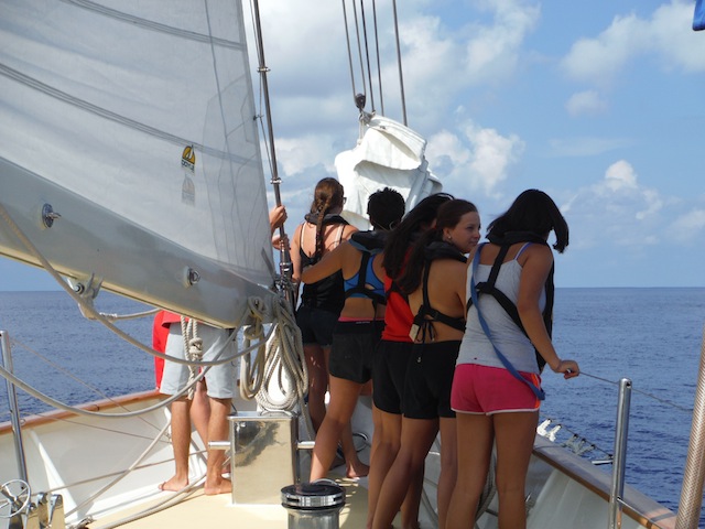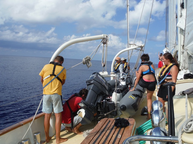 Mums, Dads, Brothers, Sisters, esteemed members of the public domain, The crew of Argo has been hard at work today successfully navigating her approximately another 160 nautical miles closer to the Sunda Straits, our gateway into Indonesia. Unfortunately, while we have been blessed with some nice sailing breeze the past couple of days, today was not to be. With all but two of the sails struck, we have been motoring along in search of the equatorial counter-current, aka our highway to the other side of the Indian Ocean. Along the way today, shortly after an Oceanography and Professional Skipper training class, we encountered what at first glance appeared to be a sizable container floating just above the surface. Upon closer inspection, it became clear that it was a capsized fishing vessel, which had obviously been adrift at sea for quite some time, judging by the growth on the hull. In an unconventional twist on the usual squeeze question this evening, the crew was asked to write down a confession on a piece of paper anonymously and then, in the fashion of a lucky dip, reach into the “confession box” and read one out aloud. Needless to say, the question on everyone’s lips at the moment is, “Who’s been farting on Max’s pillow?” The chefs cooked up a superb chili dish for tonight’s meal, supplemented with an incredible apple and blueberry cobbler for dessert – life is good on the Indian Ocean at the moment. One Love, Kris