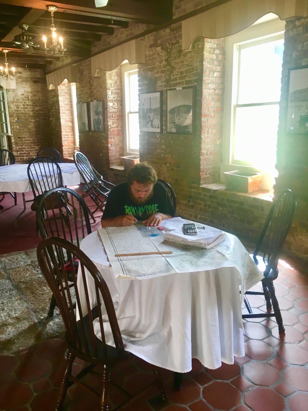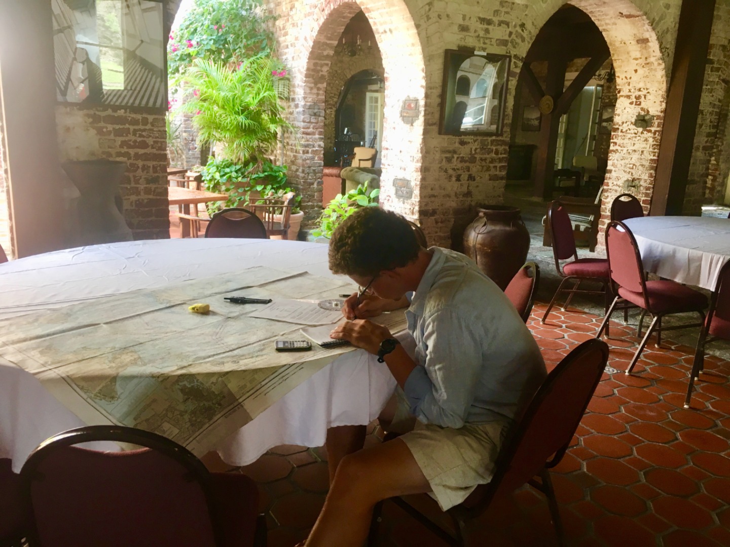 After clean-up, we all went to Copper & Lumber to start our Navigation class. We spent a few hours learning about estimated arrival and how drift affects the destination. It was nice sitting in the restaurant learning about this concept. Once we finished, we made our way back to the ship to sit for lunch. While lunch was being prepped and had the final touches put together, I had a little war against the flies that decided to board us. Everyone had to move around me to make sure that I had enough room to swat at the little trespassers.