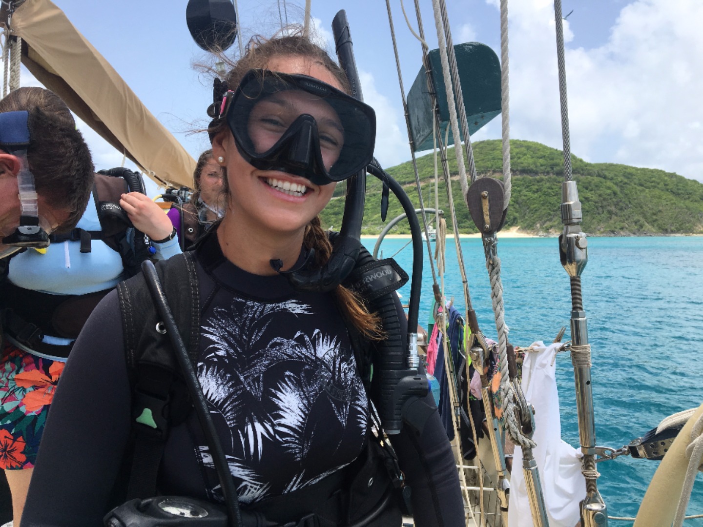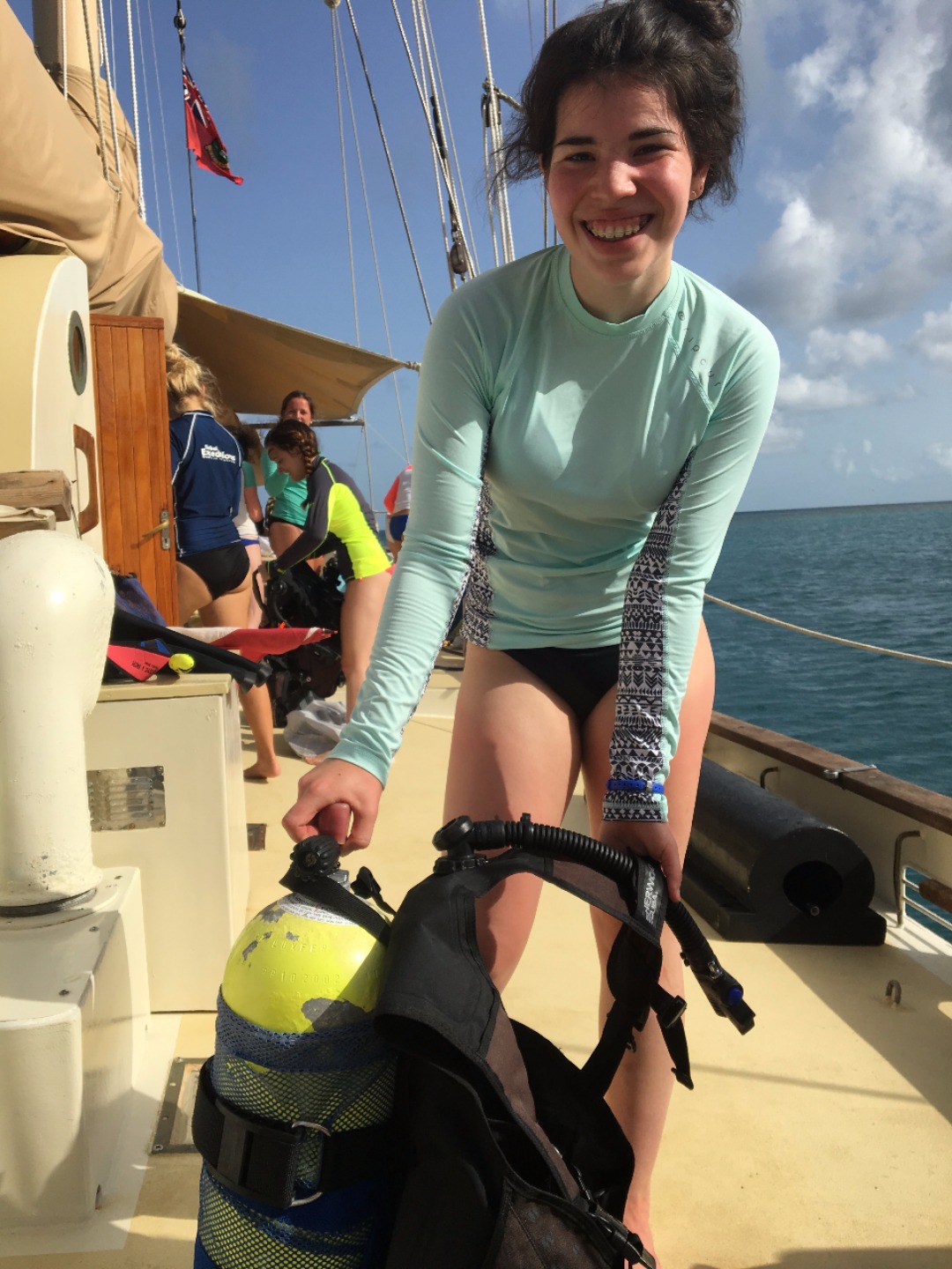 It was a long yet rewarding day here on Ocean Star. Everyone on board had a chance to do some diving today, including the Advanced and Rescue Diver trainees. As part of Open Water Diver training, we spent some time on the bottom of the ocean practicing SCUBA skills and chilling with our new crew member, Steve, the stingray. After lunch and a bit of snorkeling, we had our very first Oceanography class, where we received brownies and cake to help teach us cake tectonics. After that, the crew found themselves rolling with laughter at several peoples failed attempts to dive off the side of the boat during our daily shower. After chili (without Fritos but still very good) and sharing our spirit animals around the table, we took the first part of our emergency first response course. We all became distracted by the enormous tarpon swarming the boat. I think it is safe to say that the entire crew is satisfied with our day but ready to get some rest.