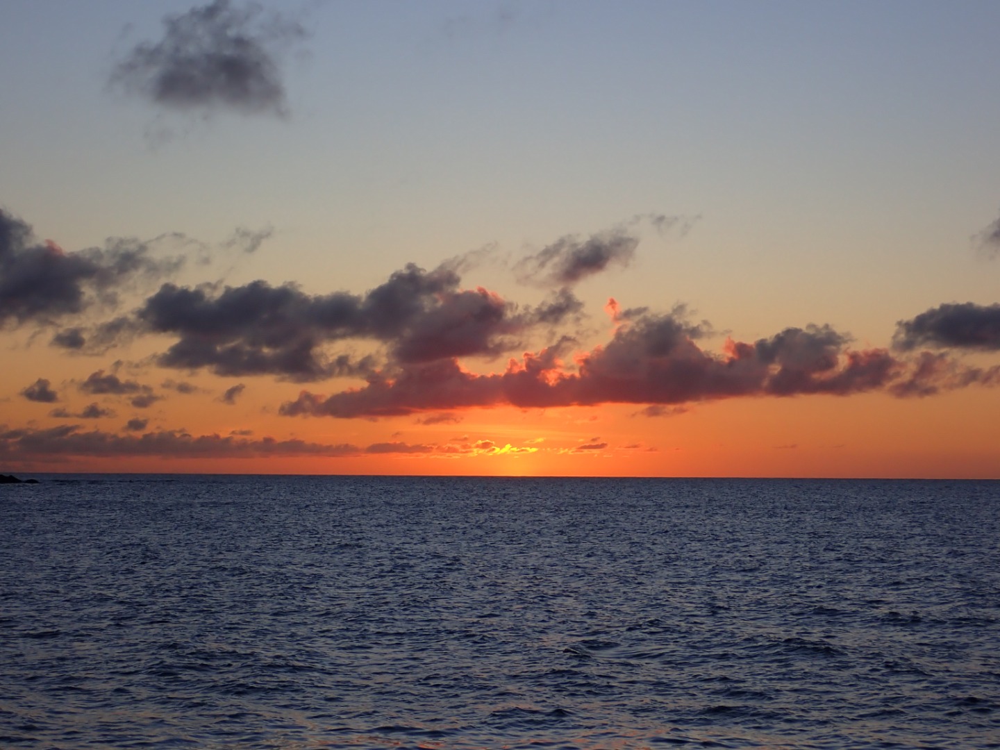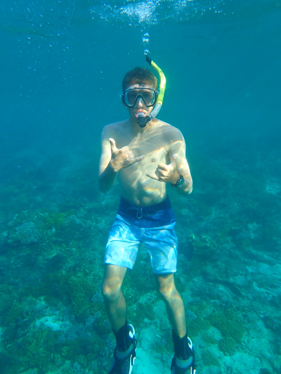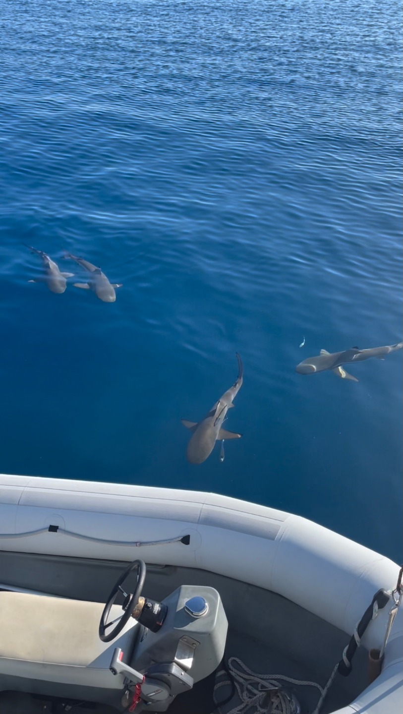 The day started with freshly baked bagels before the class of Open Water divers took their first open water dive training (only two more open water training dives till we are certified!!). Once we loaded the dinghies with all of our gear, we hopped in the water and saw some amazing coral and fish. Once my group finished our training, we swam around and saw a blacktip reef shark at the bottom; at that point, I was able to say, “I swam with sharks.” Once we were all back on Argo, we had lunch and our Leadership class. The pre-certified divers then did a fun dive. I went snorkeling, and a few of the blacktip reef sharks swam within 30 feet of me. I was just slightly terrified, but it all ended okay! Once we got out of the water, we watched the sunset, which had another green flash like day 6. After dinner, we had Marine Biology then I planned my menu for the time I am Head Chef. I am about to go to bed, but I am super excited for my shift of anchor watch because I have a good shift time and a fun watch partner!