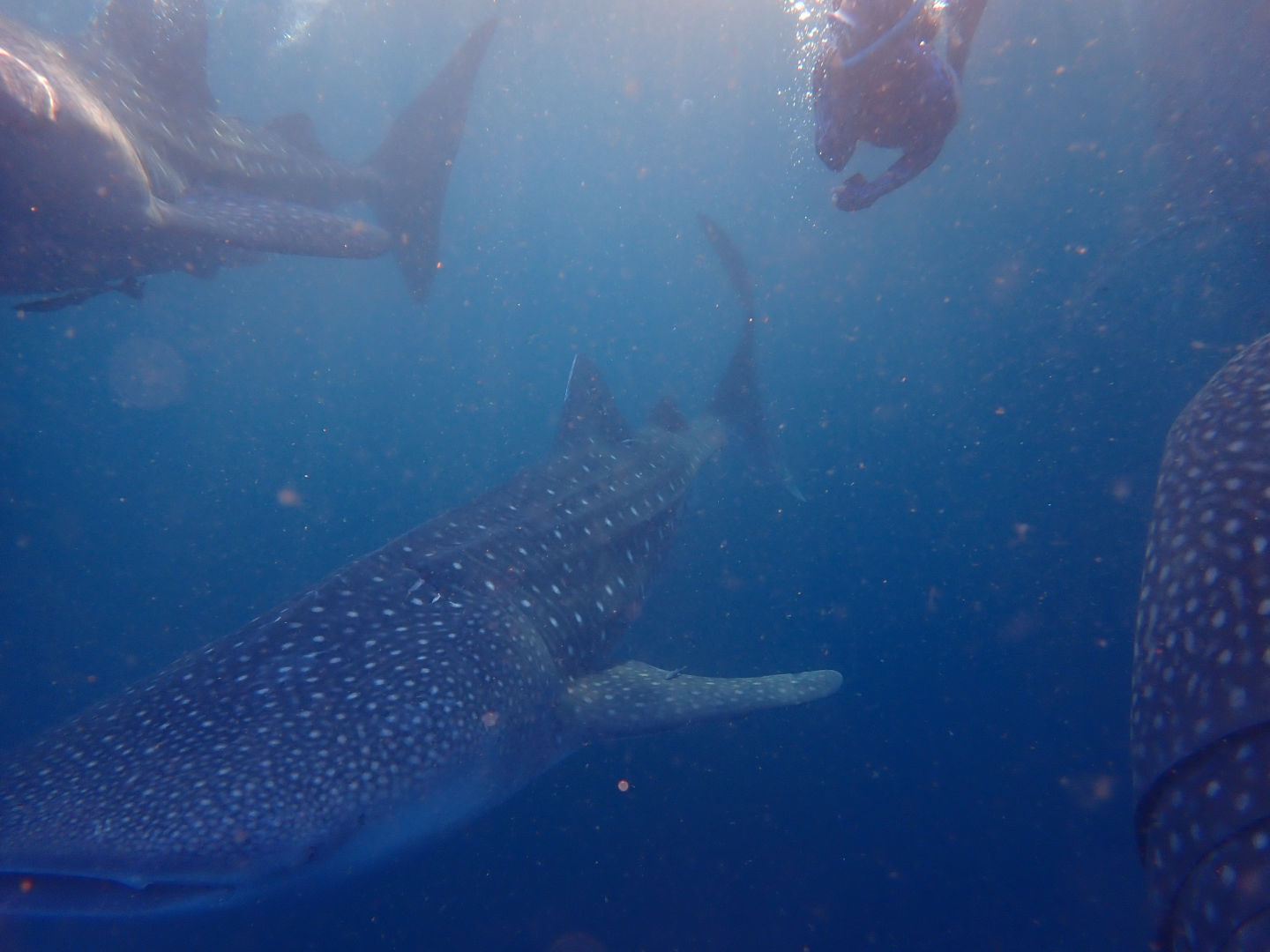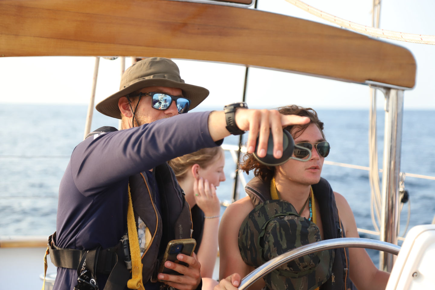 Today was a casual start at 2:30 AM for watch as we sailed to Sombawa, but the four hours flew fast by talking, stargazing, and doing boat checks. Before we knew it, everyone was up for a sunrise swim with the ocean’s biggest smile — whale sharks!!! WHAAA The first group left at 6 AM to go join a squidding boat that was throwing chum into the water to attract the massive fish, while the rest of us (aka the girlz, chivalry is dead people) waited excitedly for our turn. The first group came back bouncing off the sides of the dinghy and glowing with happiness, which didn’t make the waiting any easier, so we scrambled in the boat with our snorkeling gear on. The swim was INCREDIBLE; it’s hard to describe with words. There were around five huge whale sharks gliding all around us, randomly appearing from the depths of the oceans, swimming so close that they grazed or even bumped into us. Then a bunch of obnoxious Italian tourists arrived, so we skedaddled but still speechlessly. It was truly a once-in-a-lifetime experience. Because everyone had last watches last night, we spent the morning napping, starting assignments, or on watch again in the cockpit. After a pizza lunch, we learned about our next destination of Komodo (beware of the dragons) through a masterfully crafted presentation brought to us by Lina, Siena, and Audrey, raised the foremost staysail (as Tom would say) with Smash, and had our first Marine Biology class with Steph! Then we had some free time/nap time/watch, followed by pasta and meatballs for dinner. We ended the day with a beautiful sunset just over a nearby volcano. Crazy!