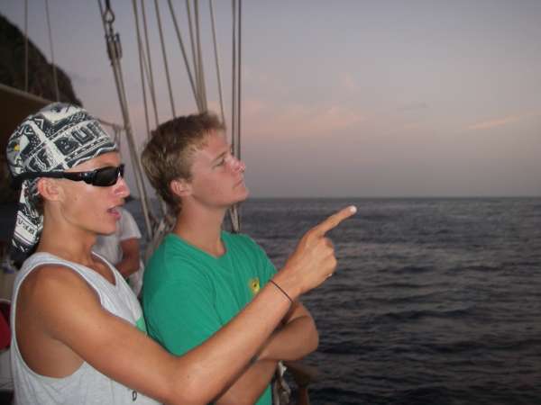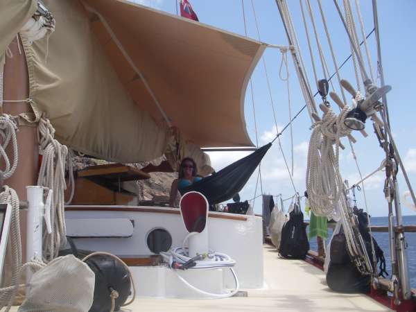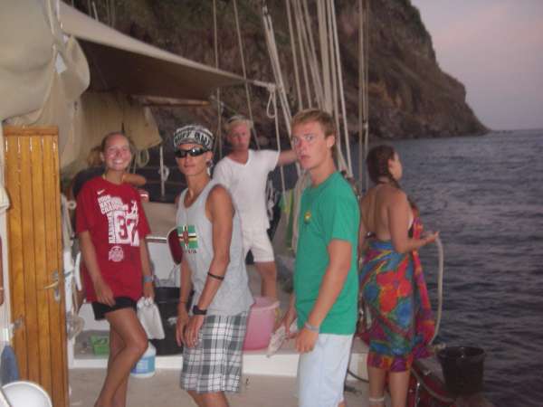 After eating a nice breakfast of oatmeal and some controversial cereal, we got ready to dive! We were split into two groups and then headed out with Saba Deep Dive Company. Diving at 100+ feet, we completed our Advanced Diver certification! The dives were incredible. The first group of Lindsey, Faloon, Rob, Matt, Erin, Laura, Mike, and I saw blacktip reef sharks, a massive crab, and a variety of other brightly colored fish and coral as we explored “encounters of the third kind” and “labyrinth.” We then headed back to Ocean Star for lunch and an afternoon of MTE Practice Fun and Oceanography studying in anticipation of the finals, which were only two days away. As the sunset, we sat down for a great pasta dinner made by chefs Jen and Faloon and shared memories of the past weeks as we headed back to the BVI’s tonight. It is hard to believe we are already headed back to the BVIs, but we will return in a much different way than we left. We are not the strangers who stepped off the dock and into Ocean Star on July 6, but now a crew of friends who have shared an unforgettable experience and a million laughs.