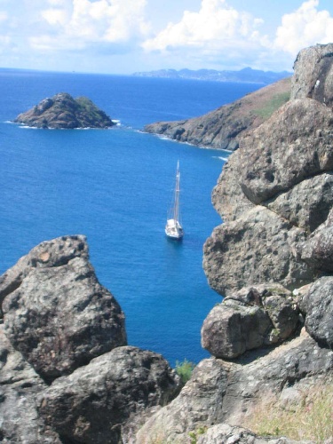 This morning, after a 7:30 a.m. breakfast of Brioches prepared to perfection by Brendan and Katrina, we broke into two groups and prepared for our dive on which we would circumnavigate a small island. The dive was one of our best dives thus far. We saw numerous schools of fish, a very rare and endangered Nassar Grouper, a sea turtle, two enormous Eagle Rays, and finally, two sharks (a Nurse shark and a White Tip Reef shark). Des, who had been looking for sharks from the beginning of the trip, was in the second group, and unfortunately, they did not see the Sharks. After returning to the boat, we had sandwiches for lunch, and then some of the crew went to do a little more exploring. We were all back on Ocean Star for the 15:30 Oceanography class, which was followed by showers and dinner, which was another tasty grill night. After dinner, we all prepped the boat for the sail to Statia in the morning and had a Marine Biology class.
