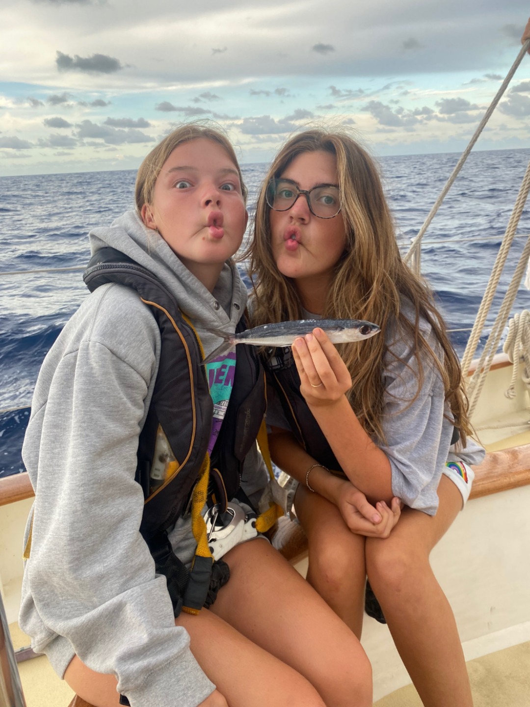 Mia and Eleanor with a flying fish