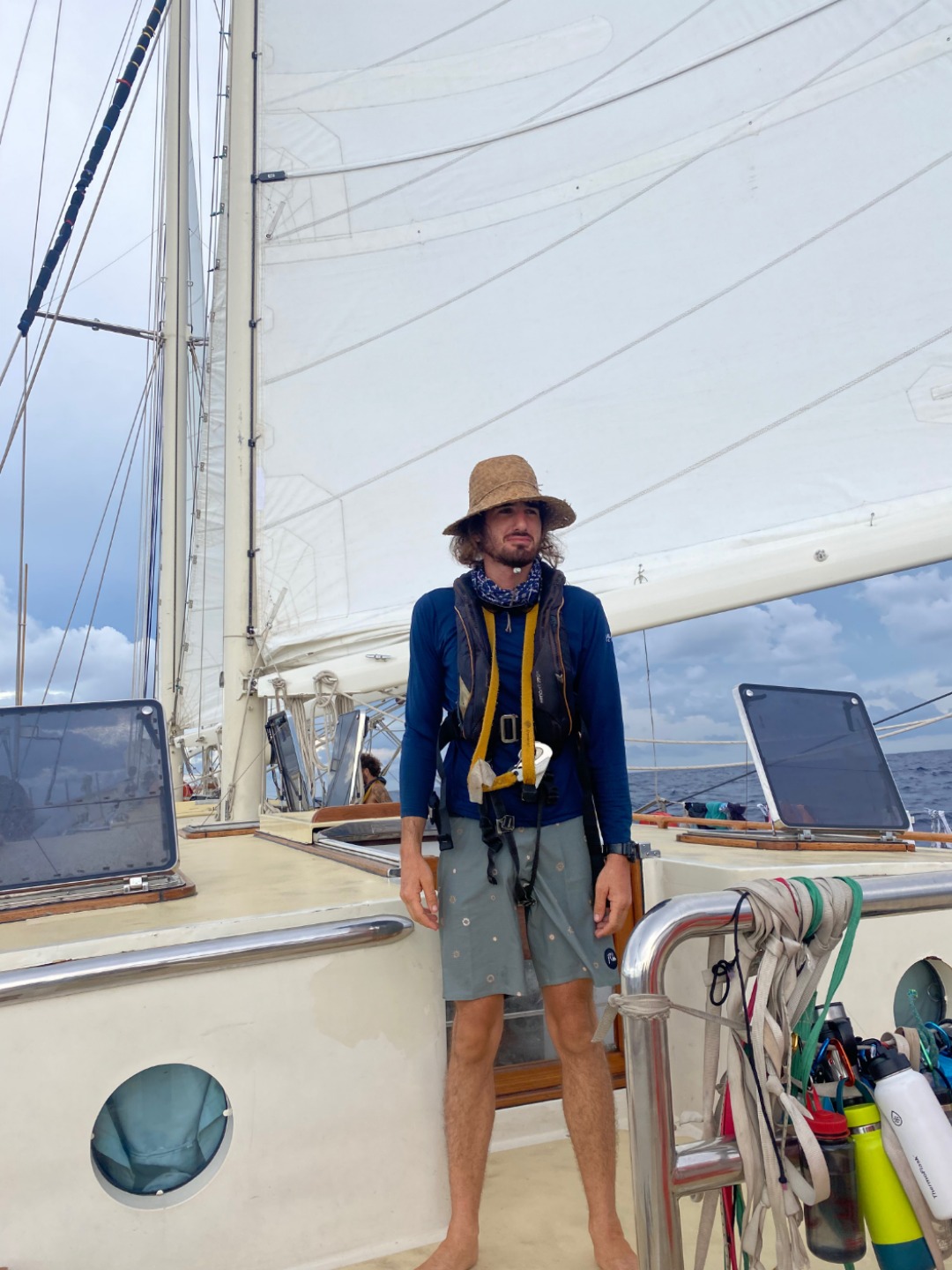 Passage life is interesting. We’ve long since settled into the swing of things, and slowly but surely, our sail handling is getting better. In between classes, we put in a gybe that was really impressively smooth. At one point, I looked back at the helm, and Steph was standing there with a giant smile on her face. I’m really looking forward to getting to Palau and getting a good night’s sleep. Watch makes sleeping a challenge, and as we near the equator, the temperature is increasing notably. I’m really just so thankful for the fan in my bunk. Aidan and I usually never see shooting stars, but last night we saw one of the most incredibly bright shooting stars imaginable. It burned bright green and stayed in the sky long enough for the rest of the watch team to turn and look at it. It was monumental.