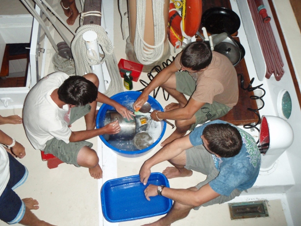 Today, we gave Ocean Star a little bit of love, care, and attention, making her sparkle from bow to stern and deck to the waterline, ready for our stay at Nelson’s dockyard. After lunch, the shipmates set out to explore the museums, historic buildings, and fortifications. We returned early to the boat to primp and preen for our night out at Shirley Heights, where we watched the sunset while eating a phenomenal fish BBQ and then hit the dance floor listening to the traditional steel drum band.
