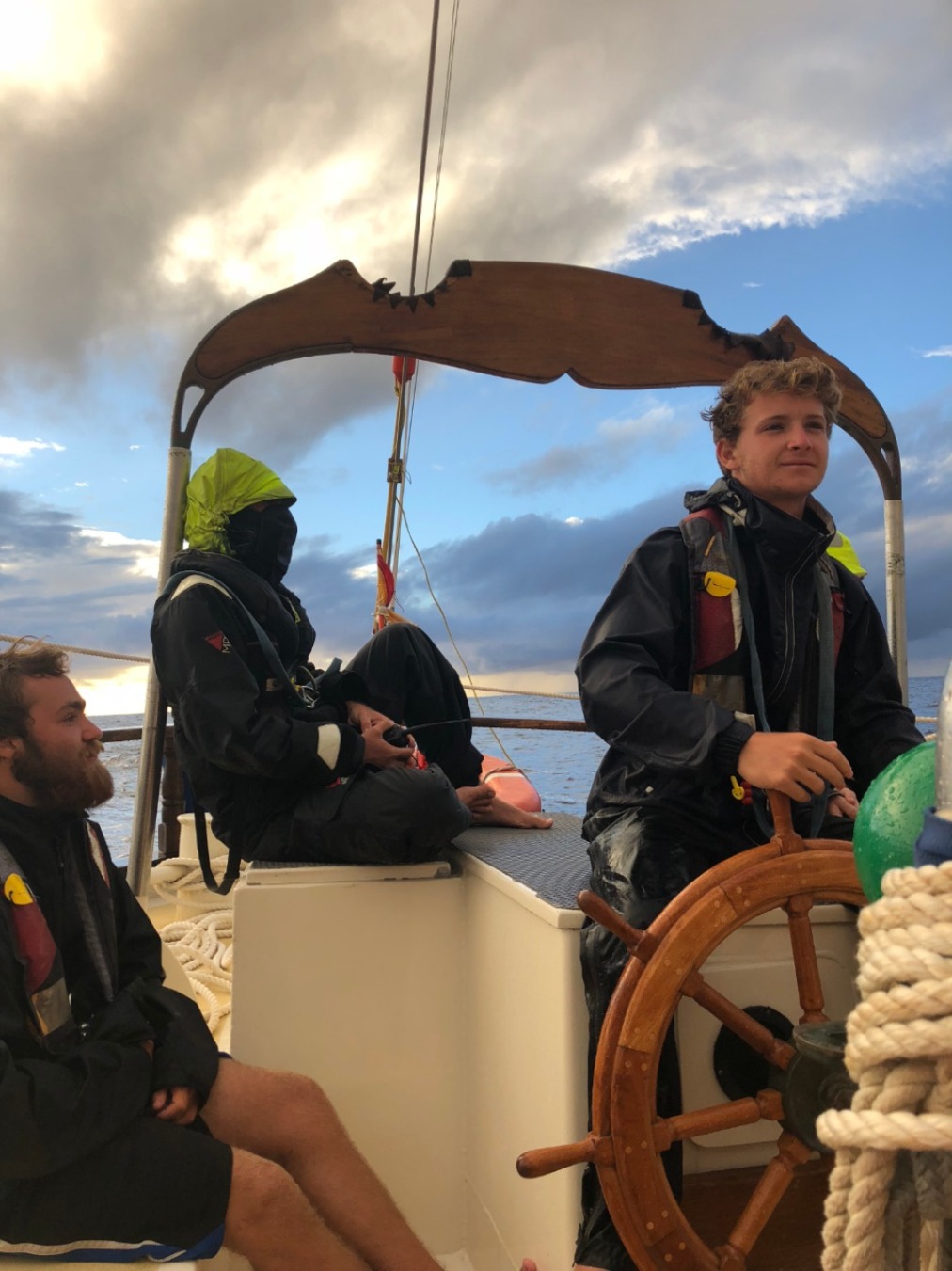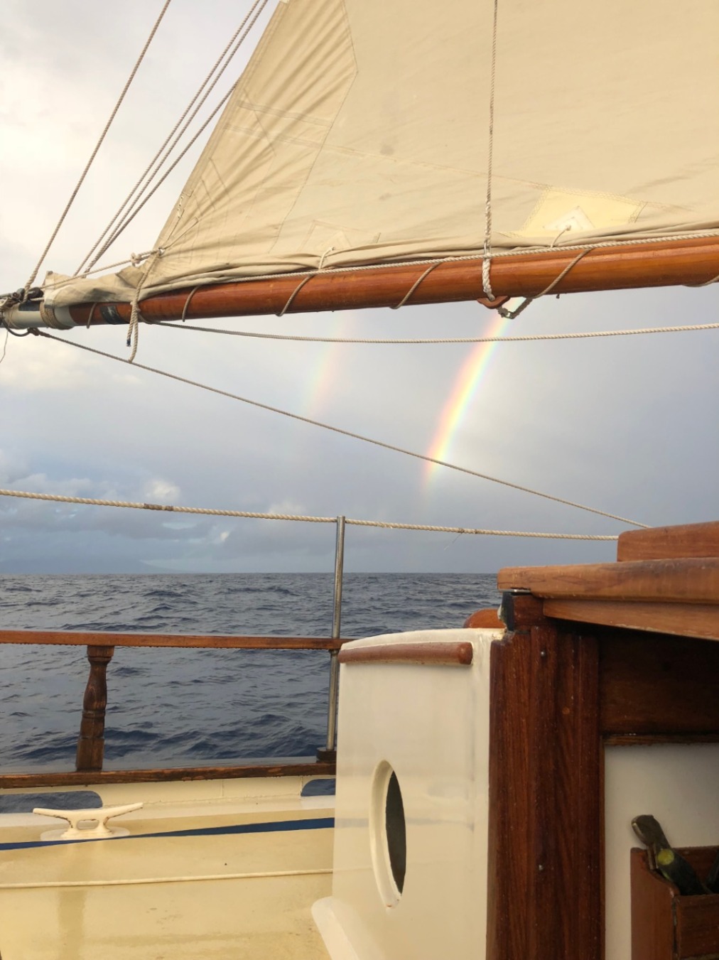 Hello from St Barts! Last night, after a delicious dinner using up all of our leftovers in the fridge, we left the fueling dock in Antigua and raised the sails for our overnight passage. Watch team 2 (Carolyn, Steph, Sinclair, Sydney, Allie, Sam, and Ian) started us off and reported TONS of shooting stars – they even caught a glimpse of the (upside-down) Big Dipper, a rare sighting down here by the equator. Watch team 1 (Ian, Steve, Emma, Will, Dasha, and Zach) enjoy a bit of rain followed by a double rainbow! They basked in its glory with an early morning snack of spoonfuls of chocolate frosting. It was a lovely motor-sail; we docked just as the noon church bells chimed right across the street from Cartier and Ralph Lauren (ooh la la!)