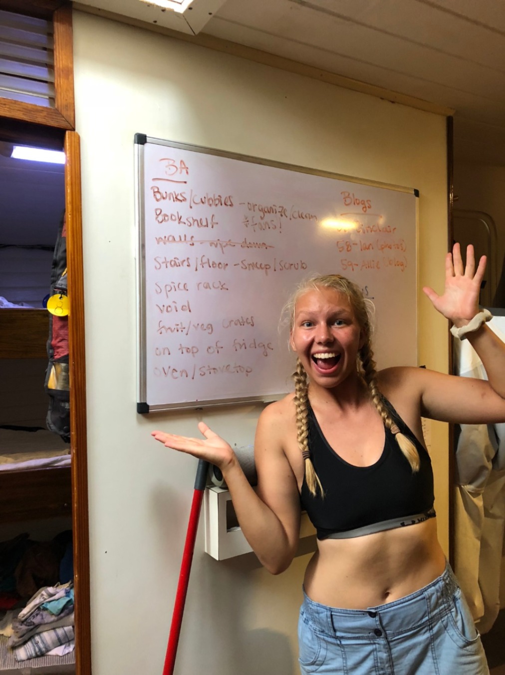 For dinner, we had yummy Asian-inspired noodles, thanks to chefs Zach and Sydney. For our squeeze question, I asked what everyone’s Chipotle order was because I think that it says a lot about a person – white or brown rice? Black beans or pinto beans? What kind(s) of salsa?? You know, the hard-hitting questions. What I learned, however, is that none of my shipmates loves Chipotle quite as much as I do. We ended dinner by affirming the person sitting on each side of us, which made everyone feel warm and fuzzy. After clean-up, we’ll have a student leadership class. Ian mentioned that we’d be doing something extra special for class – onshore, perhaps? Only time will tell…check back tomorrow to hear all about our first day in St. Bart’s!