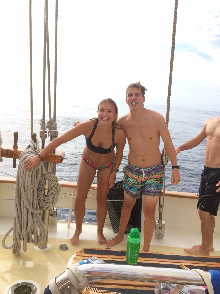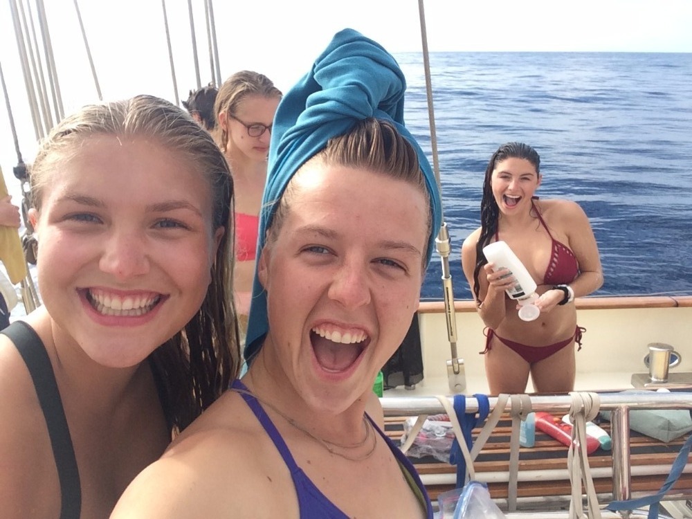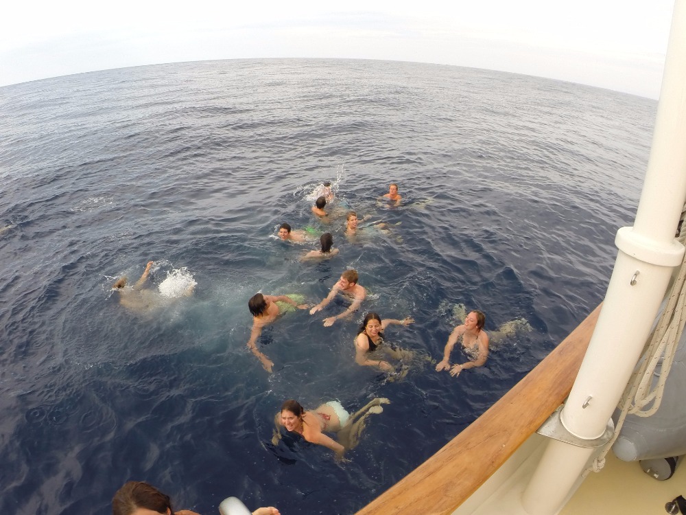 Another day in the life, except not. Now, having fully realized that every day onboard holds a moment of awe that expands the mind in the same way a cup of coffee awakens the senses to look for the previous watch teams ‘bioluminescent dolphins, life can truly be appreciated on Argo (also not having a 12-4 AM watch shift helps). Morning greeted those of us begrudgingly awake with a golden rose hue as the wind that swiftly carried us through the night started to die, with not but crashing swells to mark their passing. After breakfast and a beautiful start to the day, some of us joined the many sleeping through the late morning until everyone mustered for lunch. Our delicious meal was followed by a thorough education by our resident Spaniard oceanographer Emma, concluded by a debate moderated by our first mate Ben. The true heart of the day was at shower time. Engine off and silently drifting through the sea, a ladder was hoisted, and so began a dip in 2500m deep ,crystal blue water. The water was perfectly still, save for the ripples on the surface that mirrored a symphony of sound waves and the swells like gently rolling hills. The day was topped off with a relaxing afternoon of hangout and study time as the dark started to set, and so our watch began again.