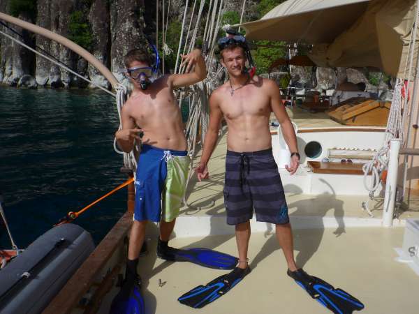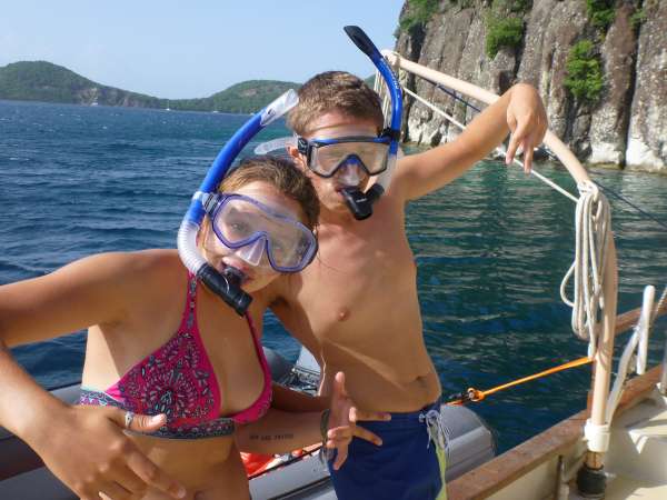 Today was a much-needed study day. Our Captain, Kevin, let us sleep in until 7:45 and have a late breakfast. It was very much appreciated since we have had many early mornings recently. We are at a very relaxed group of French islands, so Sunday is a good day to catch up on some classes and not feel like we’re missing anything eventful onshore. We started off the day with Oceanography, followed by a Sailing review for one of our exams. We played Jeopardy, which was very eventful.. and helpful. After classes, we had “siesta time” to relax, study, and work on presentations. Our last Oceanography class before our exam was up on deck after our chill time. Then, we had our scuba diving review for night and navigation diving. Preparing for our first night dive, we snorkeled the dive site to become familiar with the surroundings. We had a wonderful dinner, and, like every night, the skipper asked a squeeze question. My question was about a newfound passion. It’s always one of my favorite parts of the day because you get to learn something new about everyone and feel closer as a team. We have all grown as a family, loving and bickering and always coming closer together at the end of the day. We are about to go on our first night dive, which I am extremely excited about! I can’t wait for the adventures to come with some pretty amazing people!