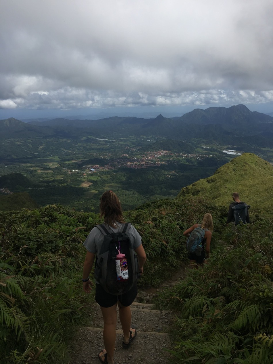 I loved learning about the turtles most, and at the end of the lecture, Steve educated us on the impact that plastic has on the oceans and these animals. This included watching a video about a turtle that had sadly ingested a simple plastic straw and was removed by scientists. Although it was sad to watch, it was successfully removed. I don’t think I am ever going to use a plastic straw again. We then went on a fun hike in the clouds. After class, we had some downtime to work on Literature Reviews for Oceanography, or study for our Oceanography midterm, or write our essay on artificial corals for Marine Biology, or any of the bucket loads of work we have to do. We really don’t have much downtime at all to do our work except at nine at night, so we have to use our time wisely. We were shuttled to land after our work time and driven up the big mountain while everyone guessed how tall the mountain was. I still am not totally sure how tall it is, but I think it was taller than the last hike we went on. It was a fun hike and Wiggy, and I played chess on the top once we made it up.