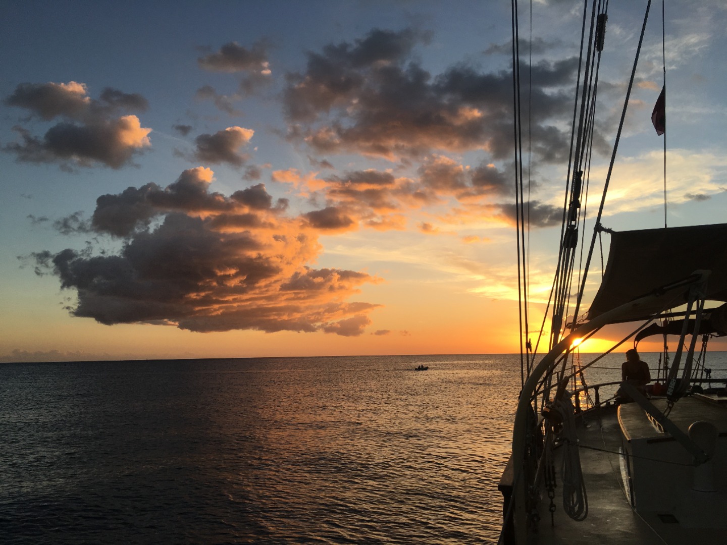 After our best attempt at showering without getting in the ocean, Peyton and I both checked each other for shrimp on us. Another beautiful sunset aboard Ocean Star, as usual. We had dinner and a squeeze. We talked about our fears, sparked by having these shrimp by our boat. To end the evening, we had Seamanship with Ian M. He’s still a talker, but we’re all always so tired at night that it feels like his class goes on forever. Because he teaches us such relevant information, especially for us living on this boat, we have to pay attention, especially when we’re tired. We talked about communication through radios, frequencies of radios, using flags to communicate, language tips for communicating effectively. We ended class talking about types of hulls (the bottom of the boat). I’m ready to sleep after our long hike, but I have watch at 10, so I am headed to type some notes and do some studying. Yay!