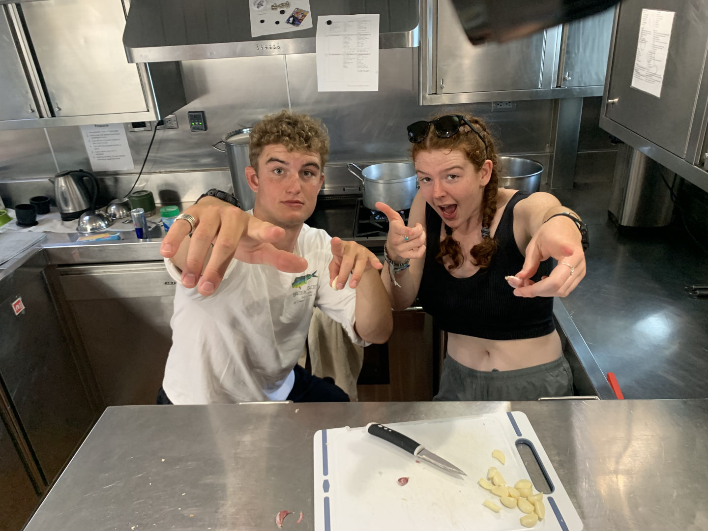 Meanwhile, Julia (head chef of the day) led the preparation of a delicious spaghetti dinner with de-sausaged sausage with help from Sophie, Jimmy, Sam, and me. The tunes were cranked, and everyone’s energy levels seemed to be fully restored for the first time since our recent passage fiasco. Everyone on Vela enjoyed dinner together, bonding more and more over everything we’ve recently overcome together and conversations that somehow still always revert back to the world-renowned Honda S2000. By the time we wrapped up dinner and shared our appreciation for the day, the sun was setting, and we took in the views of France at night for the last time, maybe. As we prepare to leave tomorrow morning, all we can do is hope that our offerings to Poseidon grant us smooth seas all the way to Spain.