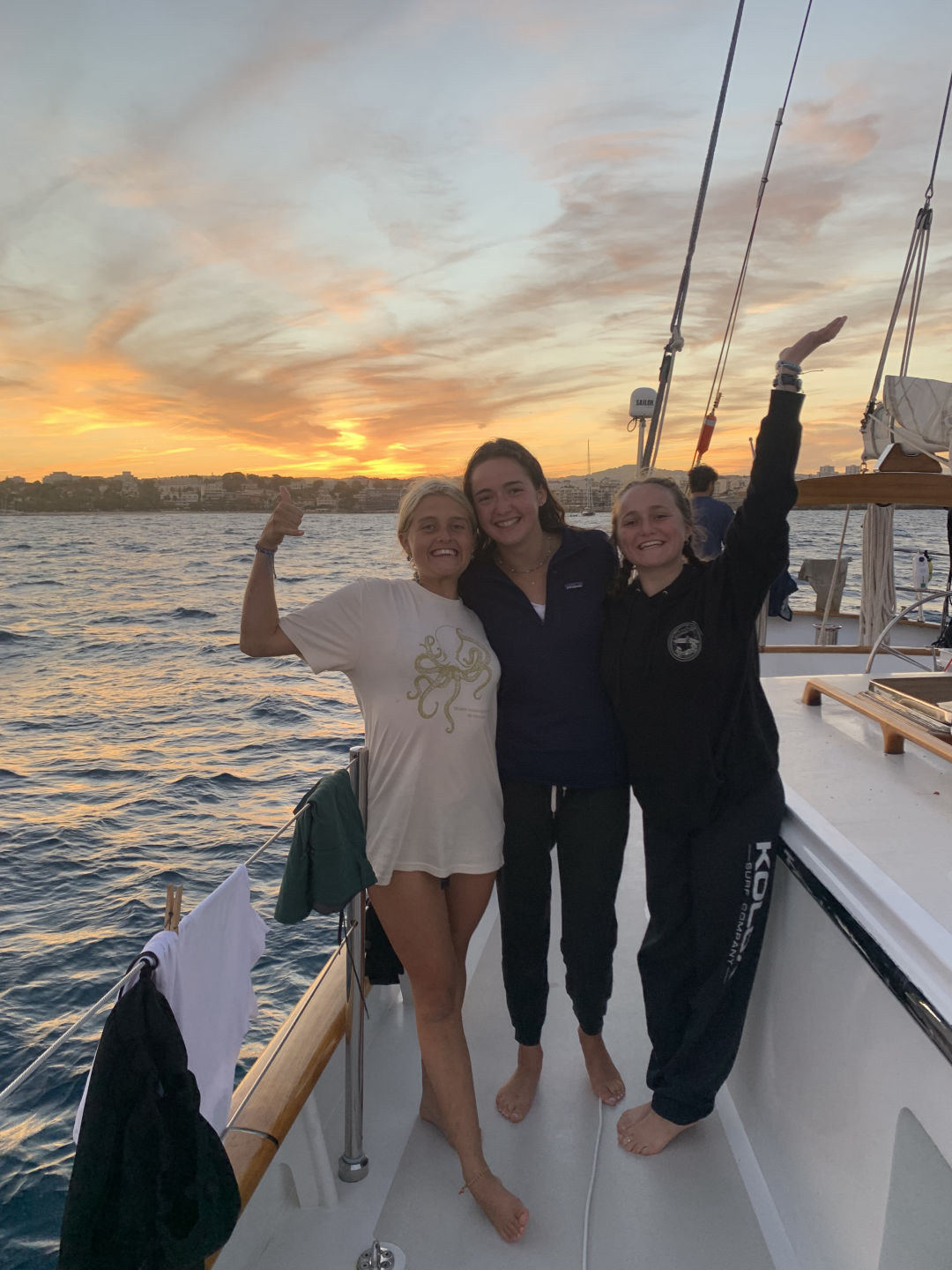 For a brief recap, we left off last night having just barely survived a passage attempt from Villefranche to Tarragona, which ended in 60-something mph winds and a substantial (to put it lightly) roll of the boat. By the time we made it back to Antibes to avoid total destruction at sea, most of us were on the brink of comatose. Wake up this morning was met with mixed emotions as many were still recovering from the night of a lifetime but also were excited for the day ahead. Zoe and Skylar led the Leadership class with a few rounds of handicapped charades; a foreign concept to most but certainly educational nonetheless. Then we had Marine Biology, where we learned all about the fundamentals of ecology. This high-energy start to the day prepped us all for a much-needed swim, accompanied by jumps off the bow and no shortage of backflips hukked (some more successfully than others). This was a terrific contrast to our usual nighttime dips in the Med while the air is chilly, and we are all fighting for a turn with the freshwater hose to rinse off the salt water. Ocean appreciation continued right into Oceanography class with water samples and data collection, including measurements of dissolved oxygen, temperature, nutrient levels, and even live viewings of plankton and other marine organisms. Among the miscroscopic organisms, some of the coolest we saw was a little microscopic jellyfish and a tiny sea star. Folks were pumped! After class, Mia, Maya, and Anna took the zen route and had a brief meditation session followed by a nap.