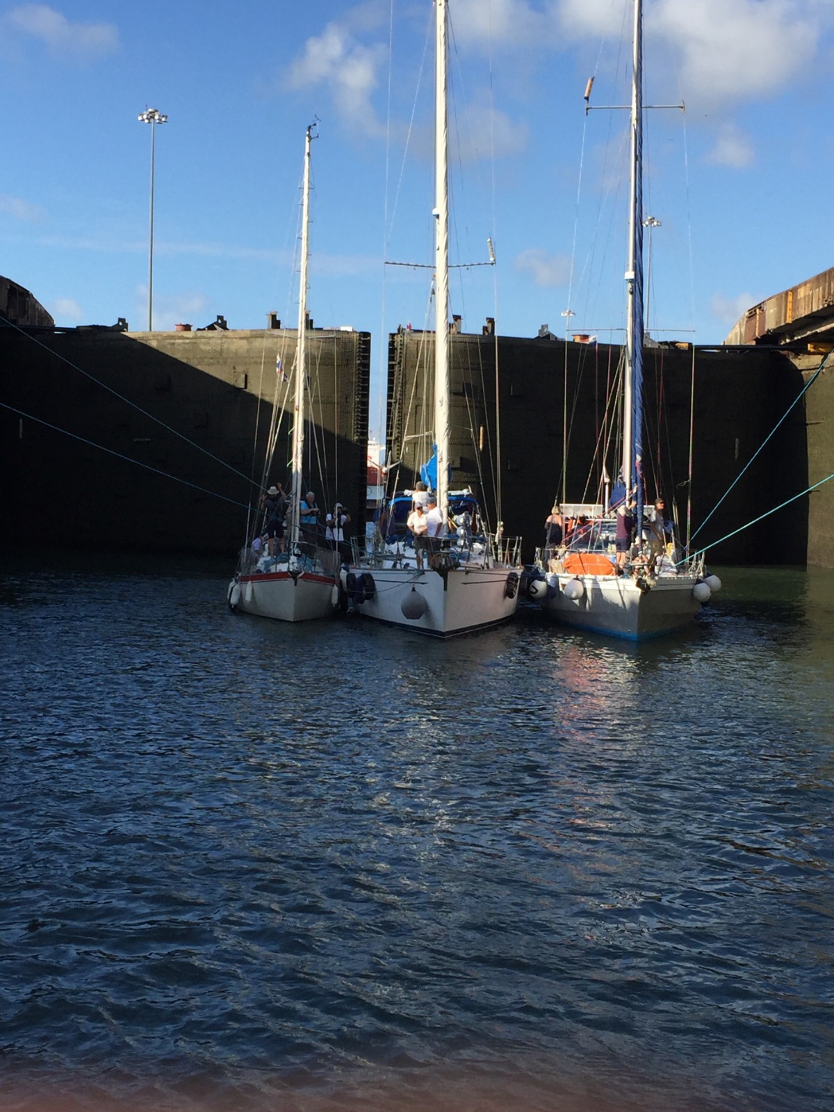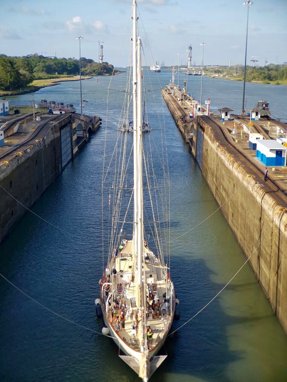 70-foot locks towered over us as we took our given place in line, lingering behind the massive tanker Sjard. A small fish in a large Ocean, Argo flouted its beauty and grace, a gem in a desert replete with behemoths. Gargantuan tankers chugged along in tugboat sandwiches, unable to move as if stuck in a gluttonous coma. Argo demonstrated her nimble agility, operating solely on the sweat and bowlines of her crew. We rose with the water, and as I type, we are moving to our next destination along the canal. The Pacific awaits, with arms outstretched, waiting to pacify and frighten sailors who dare venture to cross. The hubris of the large tankers we saw today may cause them to falter, but we, the crew of Argo, retain our strength, resilience, and compassion for one another as well as for our vessel, she who has guided us through high seas and has emerged shimmering. Onward we sail, priding ourselves on our warmth and grace, unenvious of the cold, frigid hulls that trudge through cold, distant water.
